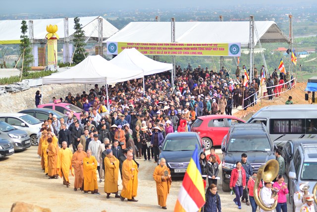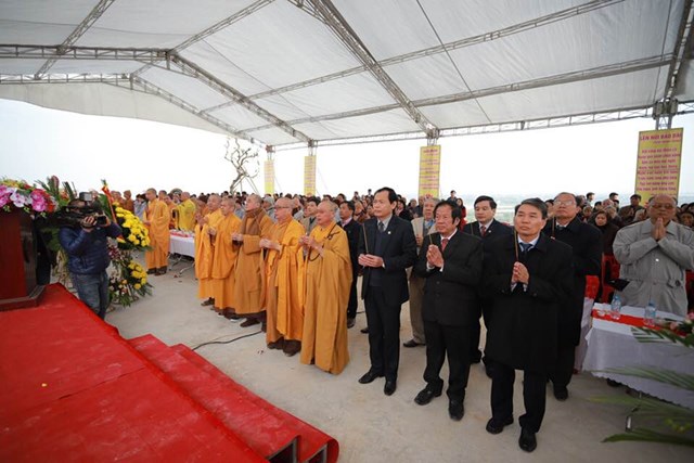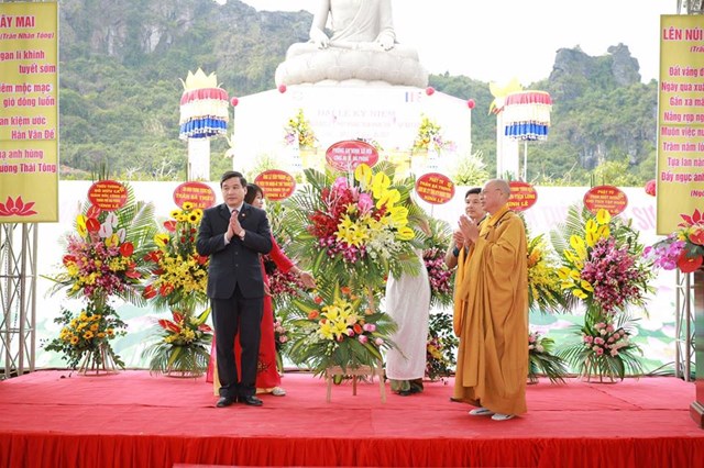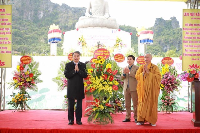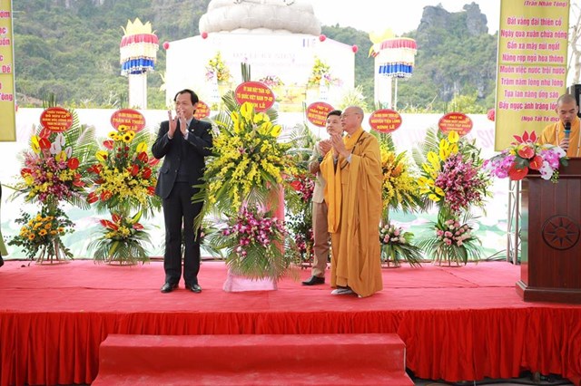 Thay mặt cho lãnh đạo chính quyền khách mời địa phương, ông: Nguyễn Duy Biện – Bí thư xã Trường Thành đã lên phát biểu nêu rõ công trạng của Phật hoàng Trần Nhân Tông đối với quê hương, Đất nước. Đồng thời, đông bào nhân dân luôn ghi nhớ và biết ơn Phật hoàng Trần Nhân Tông, nguyện theo tấm gương của Ngài, xây dựng non sông, Đất nước ngày càng giàu đẹp trên tinh thần Phật giáo luôn đồng hành cùng Dân tộc, Phật giáo và Dân tộc như nước với sữa không thể tách rời.