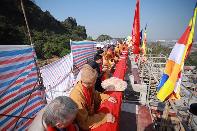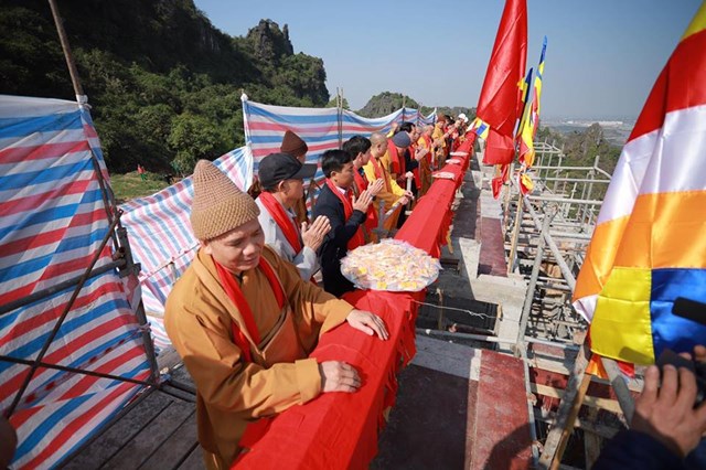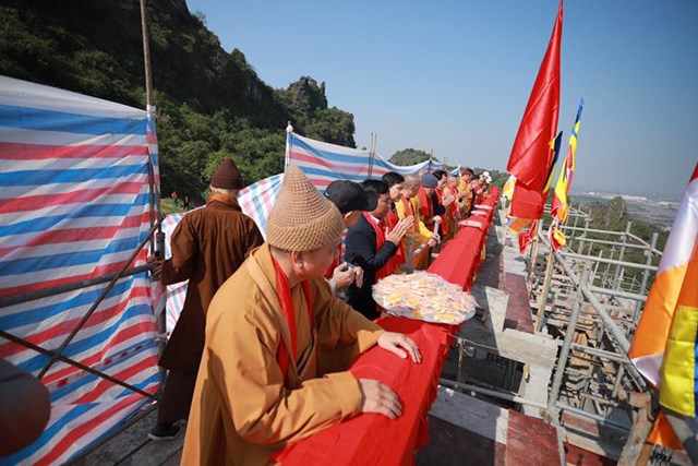 Nhân dịp này, Chư tôn đức tăng ni cũng đã làm lễ gia trì, chú nguyện, an vị long cốt chính điện chùa Long Hoa trong không khí hoan hỷ, ấm tình đạo vị. Đây cũng là công trình Phật sự thiết thực hướng tới kỷ niệm 709 năm Đức vua Phật Hoàng Trần Nhân Tông nhập niết bàn.