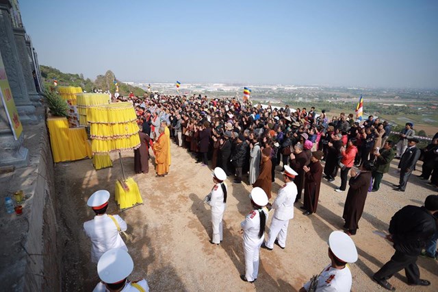 Trước khi kết thúc buổi lễ, chư tôn đức tăng ni, chính quyền địa phương, cùng đồng bào Phật tử và nhân dân đối trước tôn tượng Phật hoàng Trần Nhân Tông tổ chức nghi lễ dâng hương bạch Phật, dành một phút nhập từ bi quán tưởng niệm đức vua Phật hoàng Trần Nhân Tông và cầu nguyện cho thế giới hòa bình, chúng sinh an lạc, đạo pháp được trường tồn.