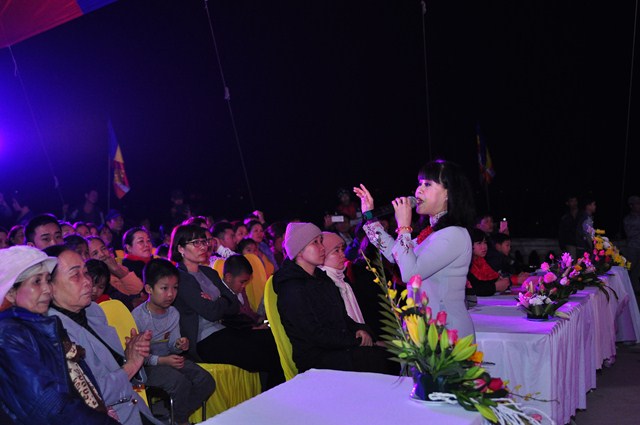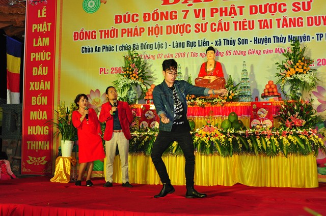 Ngoài các ca khúc Phật giáo, các ca khúc ca ngợi quê hương Đất nước, nghệ sỹ hài Vượng Râu và nghệ sỹ hài Trà My đã mang đến cho bà con Phật tử, nhân dân địa phương những tiểu phẩm hài, những tiếng cười mang tính giáo dục cao nhằm hướng bà con Phật tử, nhân dân địa phương đến gần hơn với đạo Phật, gần hơn với Phật Pháp hơn để mỗi chúng ta cùng hướng thượng, hướng thiện, sống thật tốt, nguyện thực hành theo đúng lời Phật dạy để có một cuộc sống an lạc và hạnh phúc.