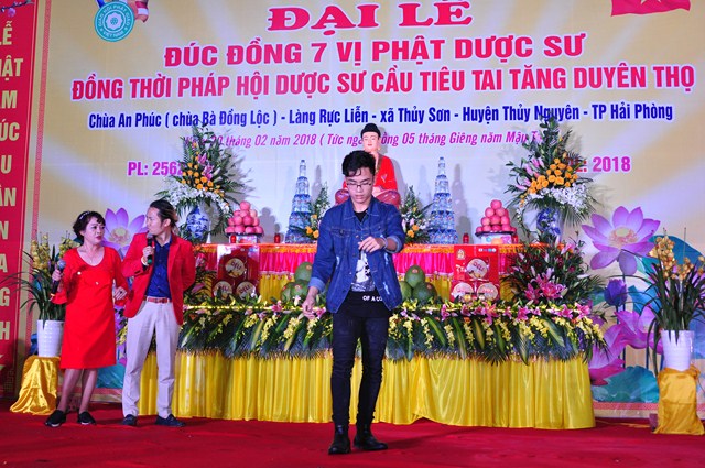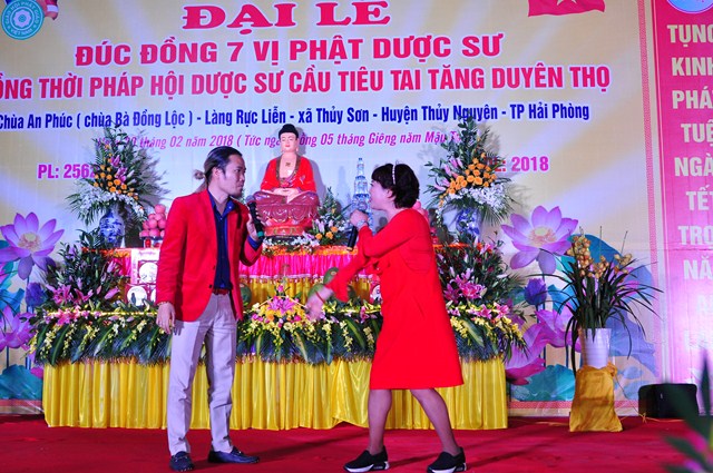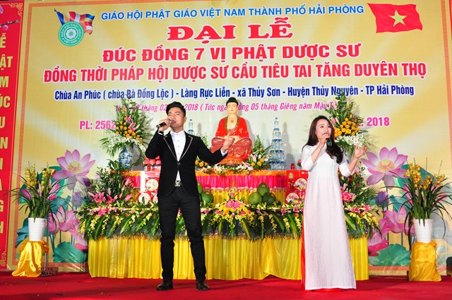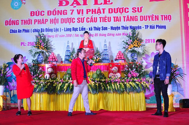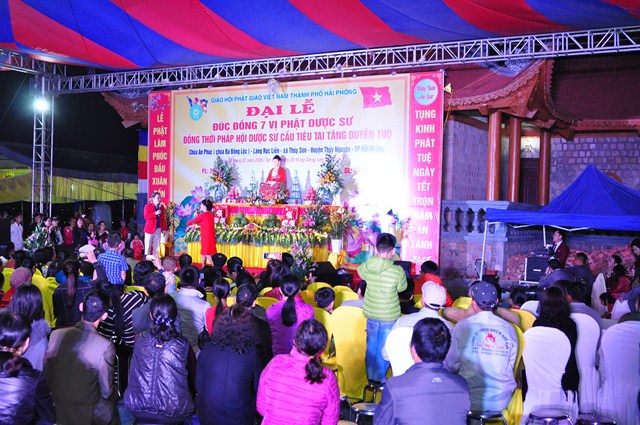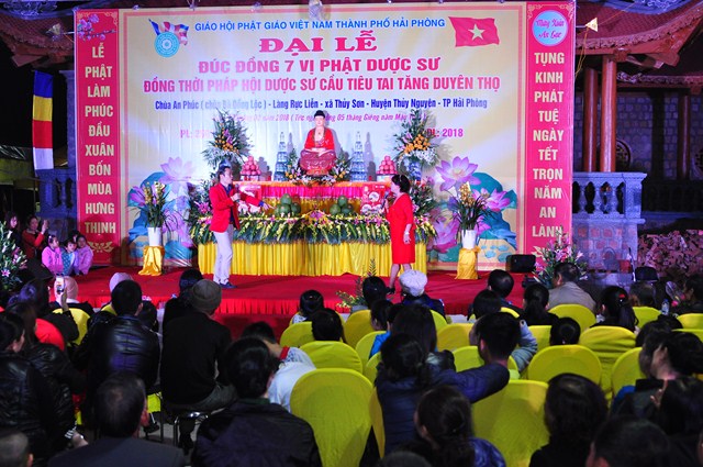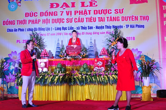 Tuy nhiên, hệ thống tượng Pháp của chùa còn chưa được hoàn thiện nên sư thầy Thích Diệu Thoa đã kêu gọi các nhà hảo tâm, các mạnh thường quân cùng chung tay với nhà chùa, chính quyền và nhân dân địa phương quyên góp tịnh tài, tịnh vật để đúc 7 pho tượng Dược Sư bằng đồng với mong muốn Đức Phật Dược Sư sẽ gia hộ cho bà con Phật tử, nhân dân địa phương được mạnh khỏe, thân tâm an lạc, hộ trì Tam Bảo, hộ trì Phật Pháp, để Phật Pháp được trường tồn. Đồng thời tổ chức Đêm văn nghệ mừng xuân để bà con địa phương được thưởng thức các ca khúc Phật giáo, các ca khúc ca ngợi quê hương Đất nước với sự tham gia của các văn nghệ sỹ đến từ thủ đô Hà Nội và đoàn ca múa Hải Phòng như: NSƯT. Hồng Liên, nghệ sỹ hài Vượng Râu, nghệ sỹ Trà My, nghệ sỹ Hoàng Tùng, ca sỹ Thanh Hậu, ca sỹ Viết Khanh…