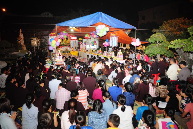 Đúng 7 giờ tối cùng ngày, Chư tôn đức Tăng Ni đã quang lâm Pháp hội chính thức cử hành nghi lễ cầu siêu cho các vong linh thai nhi, sản nạn cho gần 400 gia đình có con tử vong.