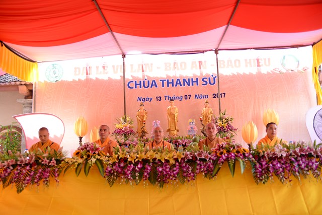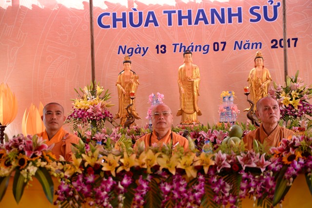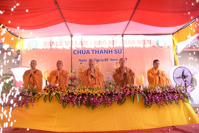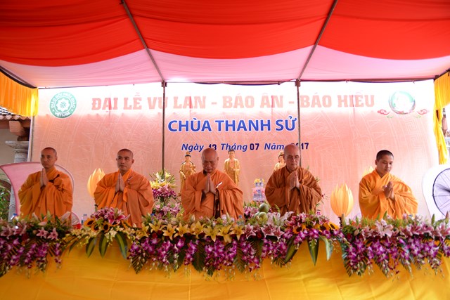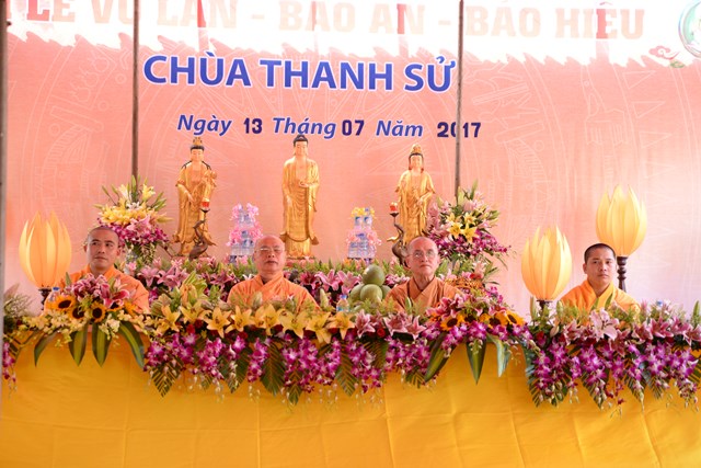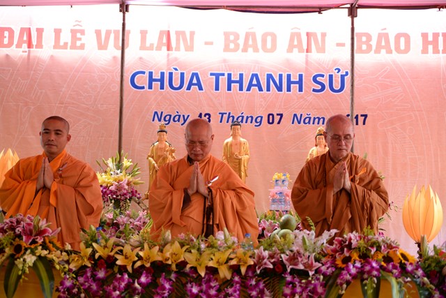 Đúng 8 giờ sáng đã chính thức diễn ra chương trình Đại lễ Vu Lan Báo Hiếu PL. 2561 – DL. 2017. Sau nghi thức niệm Phật cầu gia bị, chào quốc kỳ, đạo kỳ, 1 phút nhập từ bi quán tưởng nhớ tới Chư lịch đại Tổ sư, các anh hùng, liệt sỹ, chiến sỹ trận vong, đồng bào tử nạn đã hy sinh cho độc lập tự do của Dân tộc, Đại đức Thích Bản Giáo – Trưởng Ban tổ chức đại lễ đã lên phát biểu khai mạc Đại lễ Vu lan, báo ân, báo hiếu tại chùa Thanh Sử năm 2017. Vu Lan báo hiếu là lễ hội văn hóa tâm linh có mặt lâu đời trong truyền thống dân tộc ta. Đó là lễ hội của tình mẫu tử thiêng liêng, cũng chính là lễ hội của lòng tri ân, báo ân của mỗi người con đối với hai đấng sinh thành và đồng thời đây cũng là truyền thống quý báu từ ngàn đời nay của dân tộc Việt Nam trên tinh thần của đạo lý “Uống nước nhớ nguồn”.