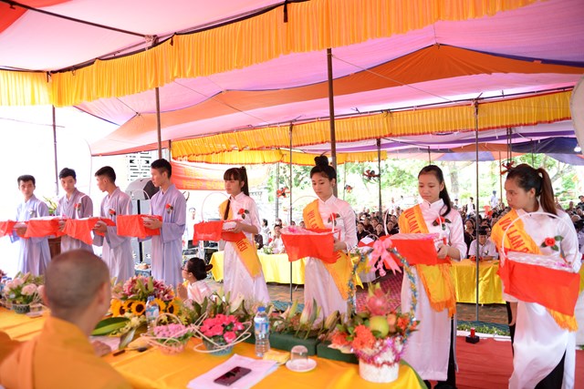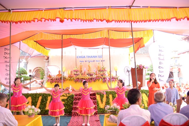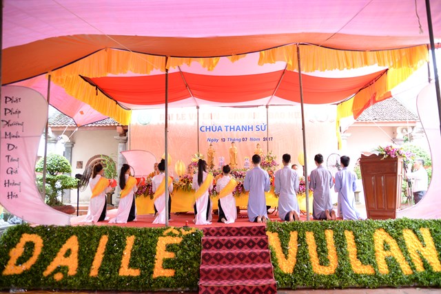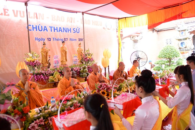 Tiếp đó, các em thanh thiếu niên Phật tử chùa Thanh Sử thay mặt cho tất cả các Phật tử trong đạo tràng đã dâng hoa và dâng y cúng dàng chư tôn đức hiện tiền nhân mùa vu lan và hồi hướng công đức lành đó cho ông bà cha mẹ hiện tiền cũng như ông bà cha mẹ đã quá vãng. Ông bà cha mẹ hiện tiền thì được phúc thọ tăng long, bồ đề tâm tăng trưởng, còn ông bà cha mẹ đã quá vãng thì được vãng sinh về cảnh giới an lành.