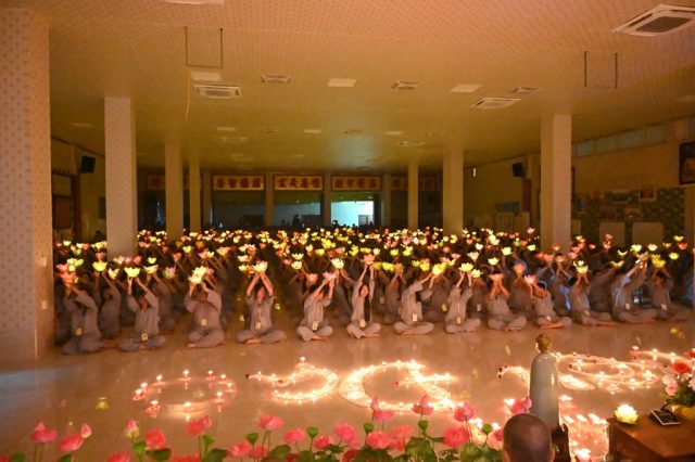 Hàng trăm ngọn hoa đăng đã được thắp sáng tại giảng đường chùa Vẽ