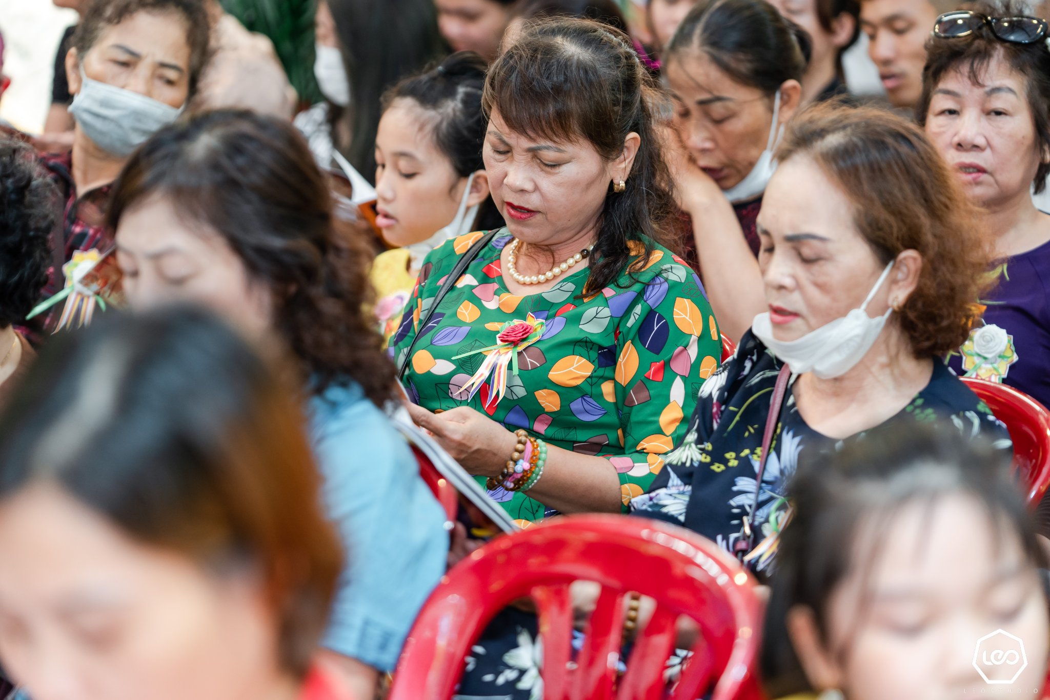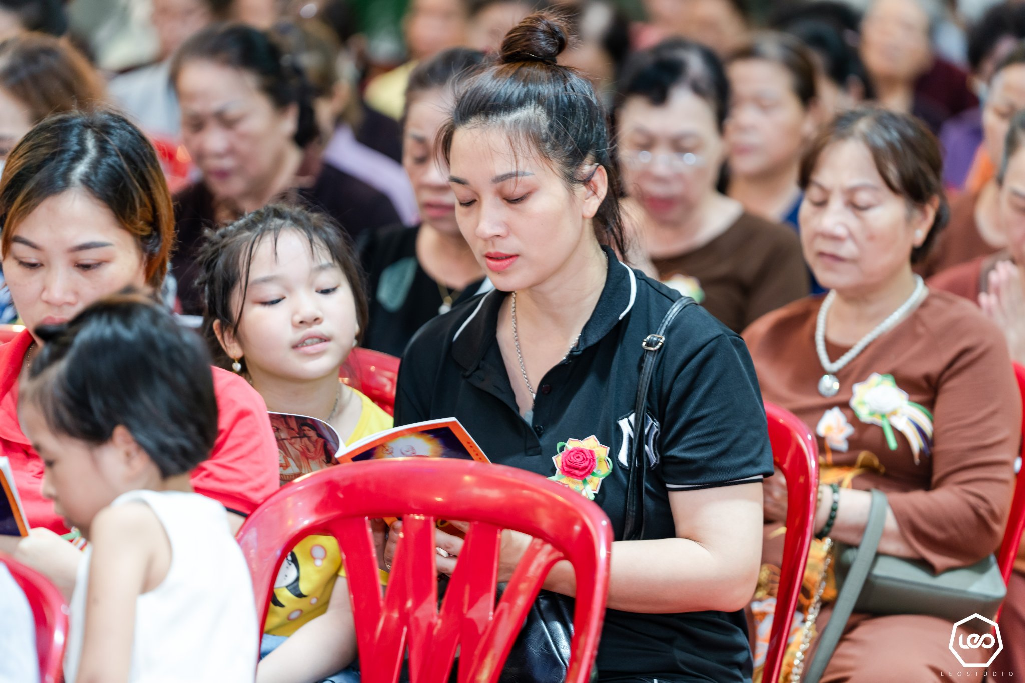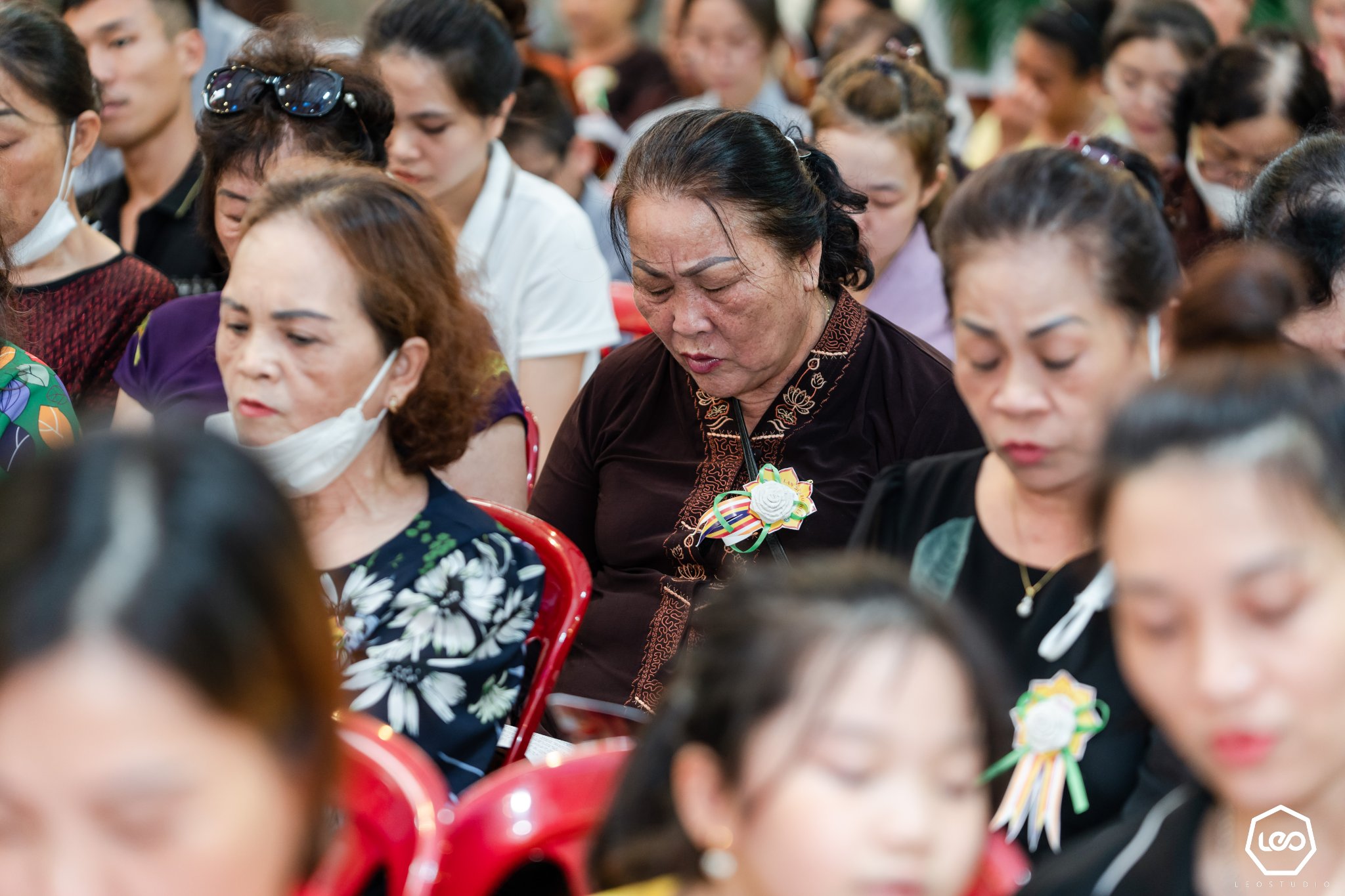 Ngoài ra, trong dịp lễ Vu Lan, khi đến chùa các phật tử sẽ được cài lên ngực áo của mình một bông hoa hồng màu đỏ tượng trưng cho người còn mẹ và màu trắng cho ai đã mất mẹ. Với những ai may mắn được cài bông hồng đỏ trên ngực áo thì được nhắc nhở hãy cố gắng hết lòng vâng lời, hiếu kính với cha mẹ. Còn những ai cài lên ngực của mình bông hoa hồng màu trắng sẽ thấy đó như là một sự nhắc nhở không bao giờ được quên thâm ân của cha mẹ.