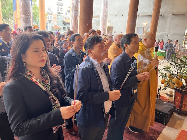 Về phía khách mời có ông Cao Xuân Liên – Ủy viên Ban Thường vụ Thành ủy, Chủ tịch UB MTTQVN TP. Hải Phòng; Ông: Nguyễn Đức Thọ – Thành ủy viên, Phó Chủ tịch UBND thành phố; Bà: Trần Thị Hoàng Mai – Giám đốc Sở Văn hóa và Thể thao Tp. Hải Phòng, cùng các ông bà lãnh đạo đại diện cho các cấp Uỷ Đảng thuộc HĐND, UBND, UB MTTQVN Tp. Hải Phòng, huyện Tiên Lãng và đông đảo quý Phật tử, du khách thập phương, nhân dân địa phương.