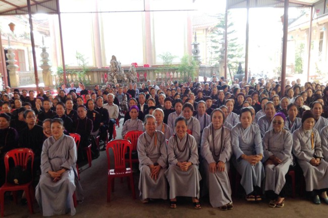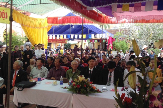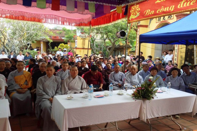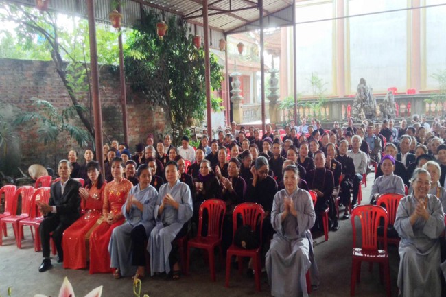 Quang lâm buổi lễ có sự hiện diện của TT. Thích Thanh Giác – Phó trưởng Ban thường trực Ban Hoằng Pháp TƯ GHPGVN, Phó trưởng Ban thường trực Ban trị sự GHPGVN Tp. Hải Phòng; ĐĐ. Thích Quảng Minh – Trưởng Ban trị sự GHPGVN huyện Tiên Lãng, Chư tôn đức Tăng Ni nội ngoại thành, Tp. Hải Phòng cùng đông đảo các Phật tử đã tham gia Hội thi giáo lý cấp huyện, cấp thành phố được tổ chức trong thời gian vừa qua.