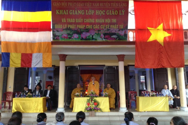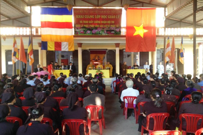 Nhân dịp này, BTS GHPGVN huyện Tiên Lãng đã tổ chức khai giảng lớp học giáo lý cho nam nữ cư sỹ Phật tử trên địa bàn huyện.