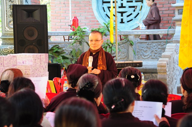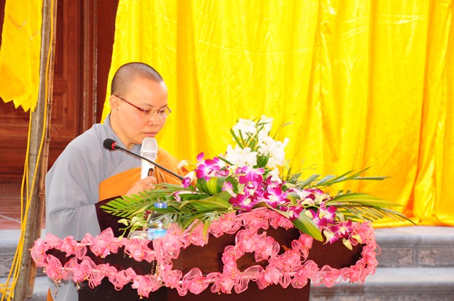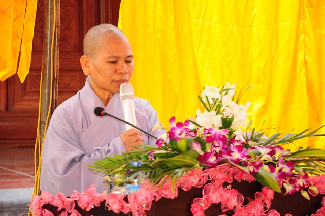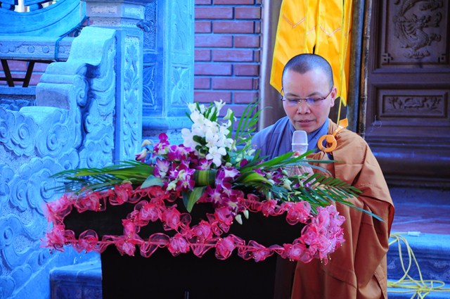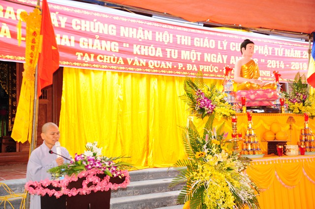 Kết thúc buổi lễ, TT. Thích Thanh Giác – Phó trưởng Ban thường trực Ban Hoằng Pháp TƯ GHPGVN đã ban đạo từ tán thán công đức của các Phật tử đã tham dự 2 kỳ thi giáo lý cấp quận và cấp thành phố vừa qua. Thượng Tọa cũng đã nêu lên vai trò của việc hoằng pháp cũng như việc áp dụng giáo lý Phật Đà vào cuộc sống hàng ngày của các Phật tử, các phật tử phải tu phúc và tu tuệ, có nhiểu Phật tử quy y rồi nhưng khi đến chùa vẫn chưa biết phép tắc, uy nghi, lễ nghĩa, chưa hiểu dc về đạo Phật nên việc khai giảng lớp học giáo lý là rất quan trọng và cần thiết, giúp các Phật tử hiểu được về đạo Phật, về giáo lý, để từ đó áp dụng lời Phật dạy, giáo lý đó vào cuộc sống hàng ngày.
