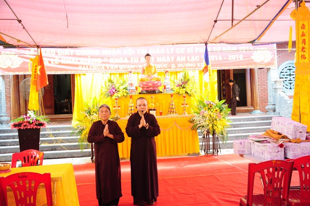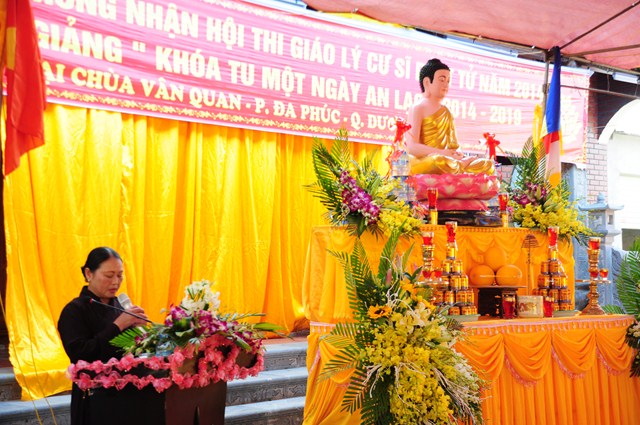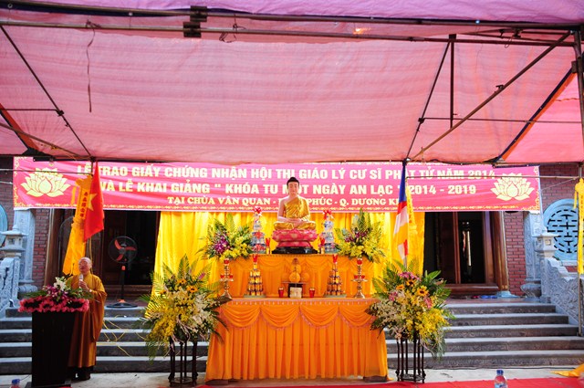 Quang lâm buổi lễ có sự hiện diện của TT. Thích Thanh Giác – Phó trưởng Ban thường trực Ban Hoằng Pháp TƯ GHPGVN, Phó trưởng Ban thường trực BTS GHPGVN Tp. Hải Phòng; ĐĐ. Thích Tục Minh – Chánh văn phòng BTS GHPGVN Tp. Hải Phòng; ĐĐ. Thích Tục Nhân – Trưởng Ban nghi lễ GHPGVN Tp. Hải Phòng; SC. Thích Diệu Thúy – Phó Ban trị sự GHPGVN quận Dương Kinh, SC. Thích Diệu Hướng – Ủy viên Ban trị sự GHPGVN Tp. Hải Phòng, trụ trì chùa Vân Quan, phường Đa Phúc, quận Dương Kinh, Tp. Hải Phòng cùng đông đảo Chư tôn đức Tăng Ni và đông đảo nam nữ cư sỹ Phật tử đã tham dự kỳ thi giáo lý cấp quận huyện, cấp thành phố năm 2014.