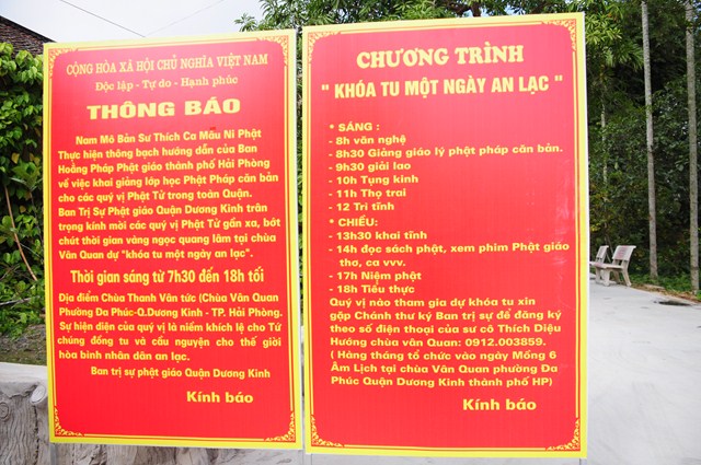 Nhân dịp này, BTS GHPGVN quận Dương Kinh đã tổ chức Khai mạc Khóa tu 1 ngày và lớp học giáo lý năm học 2014 – 2019. Theo đó, lớp học giáo lý của quận Dương Kinh sẽ được tổ chức vào ngày mùng 6 âm lịch hàng tháng tại chùa Vân Quan, phường Đa Phúc, quận Dương Kinh. Các chương trình tu học sẽ được Ban tổ chức soạn thảo dựa trên giáo trình giáo lý Phật học cơ bản của Ban Hoằng Pháp và Ban hướng dẫn Phật tử GHPGVN Tp. Hải Phòng biên soạn.