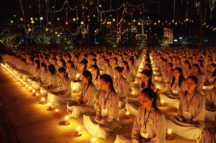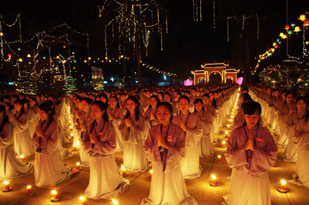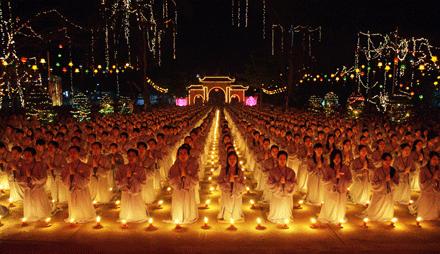 Sau 15 phút các ngọn nến của 2000 Phật tử được thắp sáng, tạo nên một nét lung linh cả khu vực lễ đài. Đại Đức Trưởng Ban Tổ chức cũng đã đọc 48 lời nguyện của Đức Phật A Di Đà và phát 12 lời nguyện về sự hành trì Niệm Phật tinh chuyên.