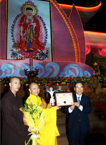 Ông Võ Văn Tường trao cúp xác nhận kỷ lục “Đêm hội hoa đăng Vía Phật A Di Đà lớn nhất Việt Nam”
