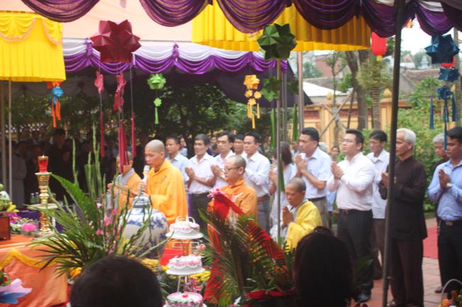 Đại diện các cấp chính quyền, về tham dự và chúc mừng có bà Nguyễn Lan Hương – Vụ phó vụ Khoa học công nghệ Bộ kế hoạch đầu tư, ông Trương Quốc Hưng – Trưởng phòng THĐN Văn Phòng Quốc Hội, chính quyền địa phương xã có ông Nguyễn Đình Ứng – Bí thư Đảng Ủy xã Đức Hòa cùng các ban ngành đoàn thể trong xã và thôn Đức Hậu, và gần 1000 Phật tử trong thôn tham dự.