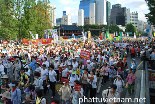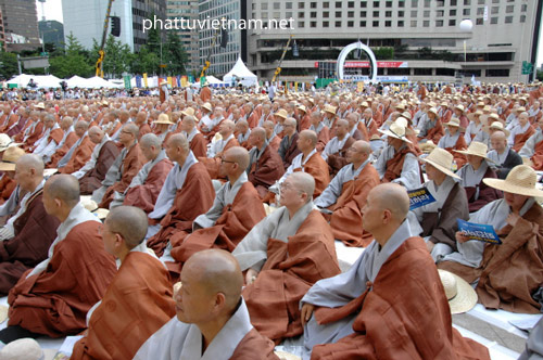 Theo cảnh sát, khoảng 60.000 Phật tử, trong đó có khoảng 4000 Tăng Ni đã tập trung ở khu vực Seoul Plaza và tuần hành trên các đường phố xung quanh tòa thị chính thành phố để tố cáo chính sách của chính quyền tổng thống Lee. Nhà tổ chức dự đoán có khoảng 200.000 Phật tử tham gia biểu tình.