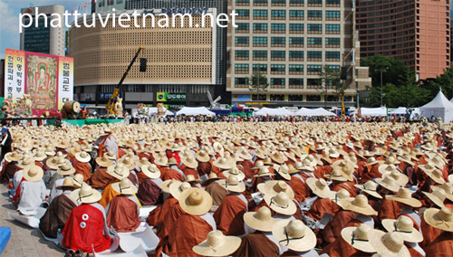 Khoảng 25.000 Phật tử đã bắt đầu biểu tình từ khoảng 1 giờ chiều nay (3 giờ chiều giờ Hà Nội) tại chùa Jogye (Tào Khê Tự), trụ sở của Tông Tào Khê – tông phái Phật giáo lớn nhất ở Hàn Quốc.