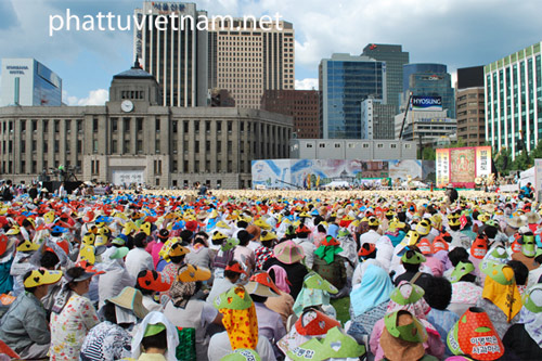 Nhà tổ chức ước tính có 200.000 ngàn Phật tử tập hợp trước Tòa thị chính Seoul
