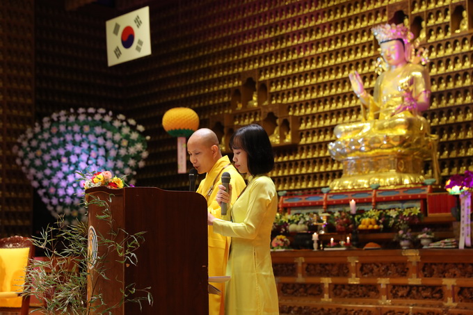 Trong bài phát biểu khai mạc, Thượng tọa Trưởng Ban tổ chức, Thích Thiện Thuận, bày tỏ niềm cảm thông, quan tâm sâu sắc đến những thân phận tha hương của cộng đồng Phật tử Viện Chuyên Tu, làm ăn sinh sống tại Hàn Quốc: “Khi đến đây, các con sẽ nhận ra rằng chúng ta có nhiều điểm chung hơn là sự khác biệt. Tất cả chúng ta đều mong cầu hạnh phúc chứ không bao giờ muốn nhận lấy khổ đau; chúng ta yêu gia đình, yêu công việc làm, muốn thành công và sống cuộc đời bình yên. Khi hiểu rõ về những điểm tương đồng ấy, chúng ta mới có thể biết chia sẻ, yêu thương nhau hơn thông qua con đường tu học Phật pháp, thực tập hằng ngày giáo lý nhiệm mầu, từ bi của đạo Phật!