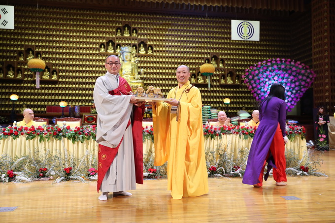 Quang lâm chứng minh và tham dự có sự hiện diện của: HT. Thích Như Điển chứng minh BTC- Phương trượng chùa Viên Giác, Đức Quốc; HT. Se Woon chứng minh BTC – Trụ trì chùa Tam Quang TP. Busan, Hàn Quốc; HT. Yu Cheon – Trụ trì chùa Chong Quang, Tp. Un San, Hàn Quốc; TT. Thích Thông Triết chứng minh BTC– Trụ trì Thiền Viện Chánh Pháp, Mỹ Quốc; TT. Thích Thiện Thuận Trưởng BTC – Trụ trì Viện Chuyên Tu, BR-VT Việt Nam; TT. Thích Hạnh Bảo, Phó BTC – Trụ trì chùa Liên Tâm, vương quốc Phần Lan; ĐĐ. Thích Viên Giác – Trụ trì chùa Đôn Hậu, Na Uy; ĐĐ. Thích Như Tịnh – Trụ trì Tổ đình Viên Giác, Hội An Việt Nam; ĐĐ. Thích Hạnh Tuệ – Tri sự chùa Phật Đà, Mỹ Quốc; ĐĐ. Thích Viên Anh, Phó BTC – Tp. Hồ Chí Minh, Việt Nam; NT. Thích Nữ Thuần Trí – Trụ trì Thiền Viện Huệ Chiếu – BR-VT, Việt Nam, NS. Thích Nữ Diệu Phước – Trụ trì chùa Linh Thứu, Đức Quốc; cùng chư Tôn đức Tăng, Ni từ các nước quang lâm và hơn 600 nam nữ Phật tử về tham dự lễ khai mạc.