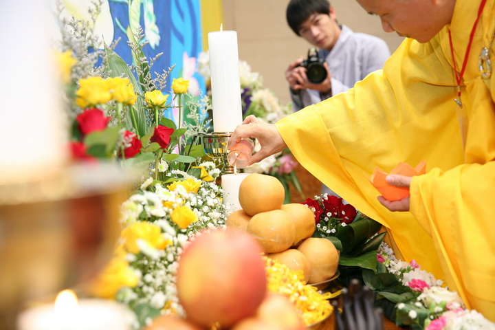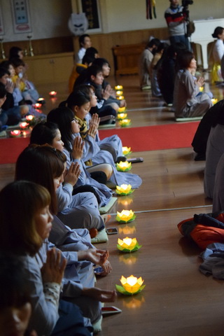 Đại đức Thích Thiện Hưng khai mạc buổi lễ. Sau lễ khai mạc các nam nữ Phật tử dâng hoa, hương, nước cúng dường Đức Phật. Trong buổi lễ Hòa thượng chứng minh ban Đạo từ. Hòa thượng khuyên dạy và tán thán công đức của BTC. Những ngọn nến được thắp lên làm xua tan bóng tối.
