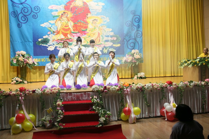 Sau đó đại chúng đồng hướng về tôn dung bảo tướng của Đức Phật A Di Đà cung tuyên 12 lời nguyện Niệm Phật và đồng trì niệm danh hiệu Đức Phật A Di Đà. Buổi lễ khép lại trong tiếc mục ca nhạc, thả bong bóng cầu hòa bình. Đại chúng dâng lời cầu nguyện qua bài chú Đại bi và tâm nguyện của mình gửi vào những chiếc bong bóng được thả bay thật cao thật xa hầu mong thế giới hòa bình chúng sanh an lạc.