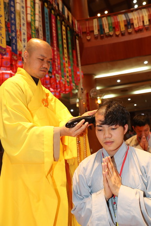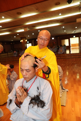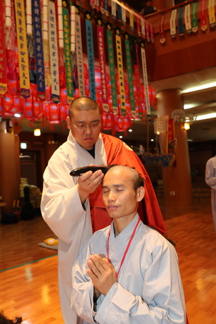 Giữa tiết trời lạnh lẽo, tết trung thu Hàn Quốc là lúc mọi người sum vầy bên gia đình và người thân thì các anh em lao động bên này ngồi đếm dài, ngày ngày trôi qua trong buồn tủi. Nay nhờ có Phật pháp, các em biết sống tích cực hơn, cuộc đời ý nghĩa hơn. Như lời phát nguyện của giới tử Thiện Đạt, đại diện cho 40 giới tử trong đợt xuất gia gieo duyên lần này: “Khi tóc xanh chúng con rơi xuống cũng đồng nghĩa với tâm niệm chúng con phát nguyện buông bỏ dục lạc, lợi danh không tiếc nuối và cúi mong mai này đầy đủ thiện duyên thì xin lấy nước chiên đàn rữa tay các ngài chứng minh cho chúng con được chính Sư Phụ Thích Thiện Thuận nhận làm đệ tử xuất gia, đời đời sinh ra chốn nào cũng được an trú trong Đại Tăng, tu học pháp xuất thế. Cúi mong quí ngài từ mẫn chứng minh, và chấp nhận lời thỉnh cầu của chúng con.”