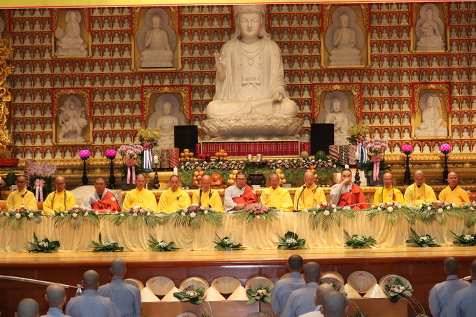 Đường đầu Hòa thượng, Thượng tọa THÍCH TRÍ ĐỊNH, Yết-ma A-xà-lê, Thượng tọa THÍCH THIỆN THUẬN, Giáo thọ A-xà-lê, Thượng tọa THÍCH HẠNH BẢO cùng chư tôn đức Tăng, Ni nhị bộ.