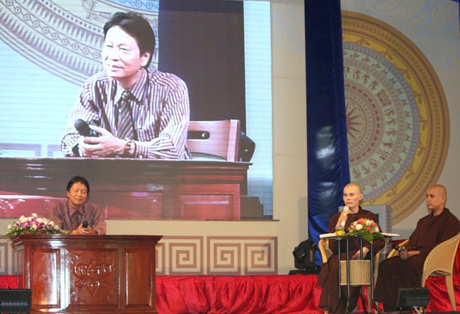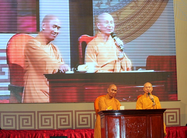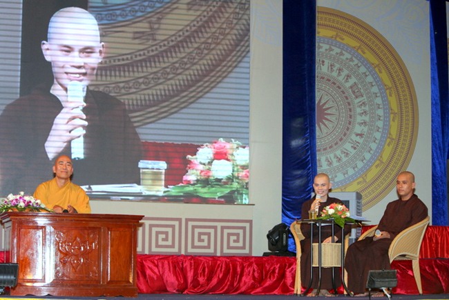 Mở đầu buổi nói chuyện, ĐĐ Thích Khải Thành và ĐĐ Thích Toàn Ngộ – Thay mặt thính giả đặt những câu hỏi xoay quanh cuộc đời tu hành, sự nghiệp giảng dạy, hoằng pháp của TT Thích Tâm Đức.