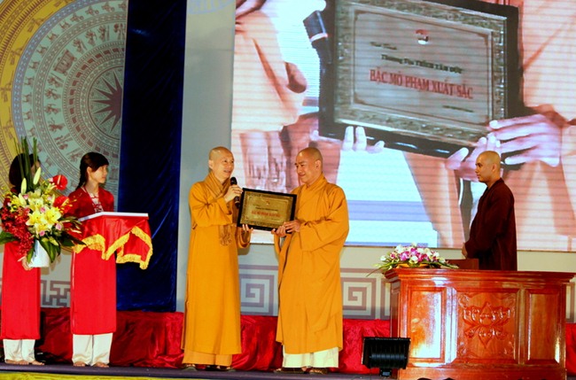 Tại buổi giao lưu, TT. Thích Chân Quang đã thay mặt tất cả tăng ni, phật tử Thiền Tôn Phật Quang ngưỡng vọng dâng lên Người niềm kính yêu sâu đậm, đồng thời còn có một món quà tinh thần – là kỷ niệm chương vinh danh TT Thích Tâm Đức – Bậc mô phạm xuất sắc.