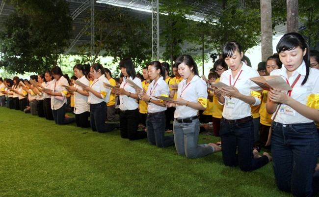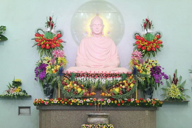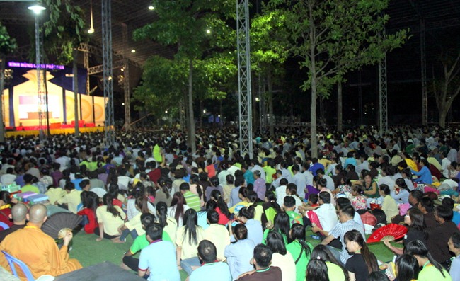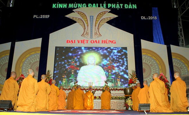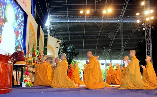 Sau cùng là nghi thức tụng bài Sám Khánh Đản và nghi thức dâng hoa cúng dường thật trang nghiêm. Và Đại Lễ Phật đản 2559 tại Thiền Tôn Phật Quang đã diễn ra thành công tốt đẹp./.