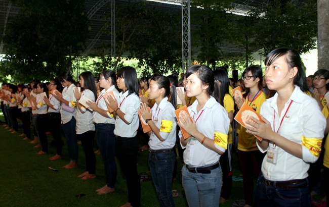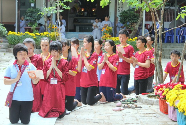 Thể theo chương trình, đúng 8h00” sáng ngày 14/04, tại Chánh điện, khóa lễ tụng kinh Cầu an diễn ra thật trang nghiêm với sự tham dự của đông đảo phật tử. Tiếp theo là khóa lễ cầu siêu và sau đó ĐĐ Thích Khải Hạnh và ĐĐ Thích Khải Đạo thay mặt Thượng tọa Trụ trì truyền Tam quy Ngũ giới cho gần 800 thiện nam tín nữ phát tâm Quy y Tam bảo chính thức trở thành phật tử.