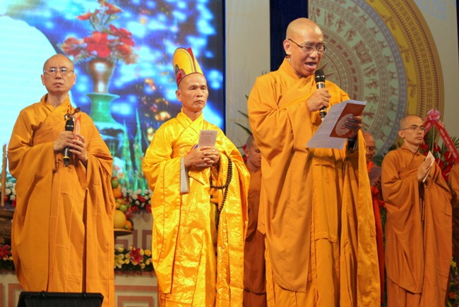 Tiếp theo đó, toàn thể Hội chúng đã lắng nghe Thông điệp Đại Lễ Phật Đản PL.2559 của Đức Pháp Chủ GHPGVN gửi toàn thể Tăng, Ni, đồng bào Phật tử trong và ngoài nước. Sau đó tất cả cùng hướng tâm về Ngài hô to: Y giáo phụng hành.