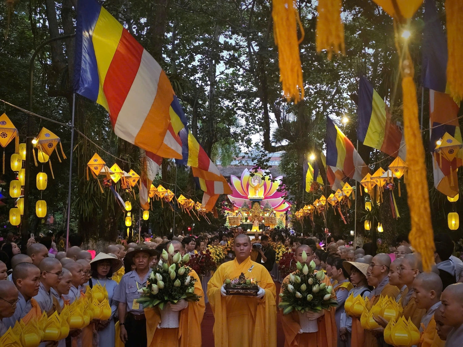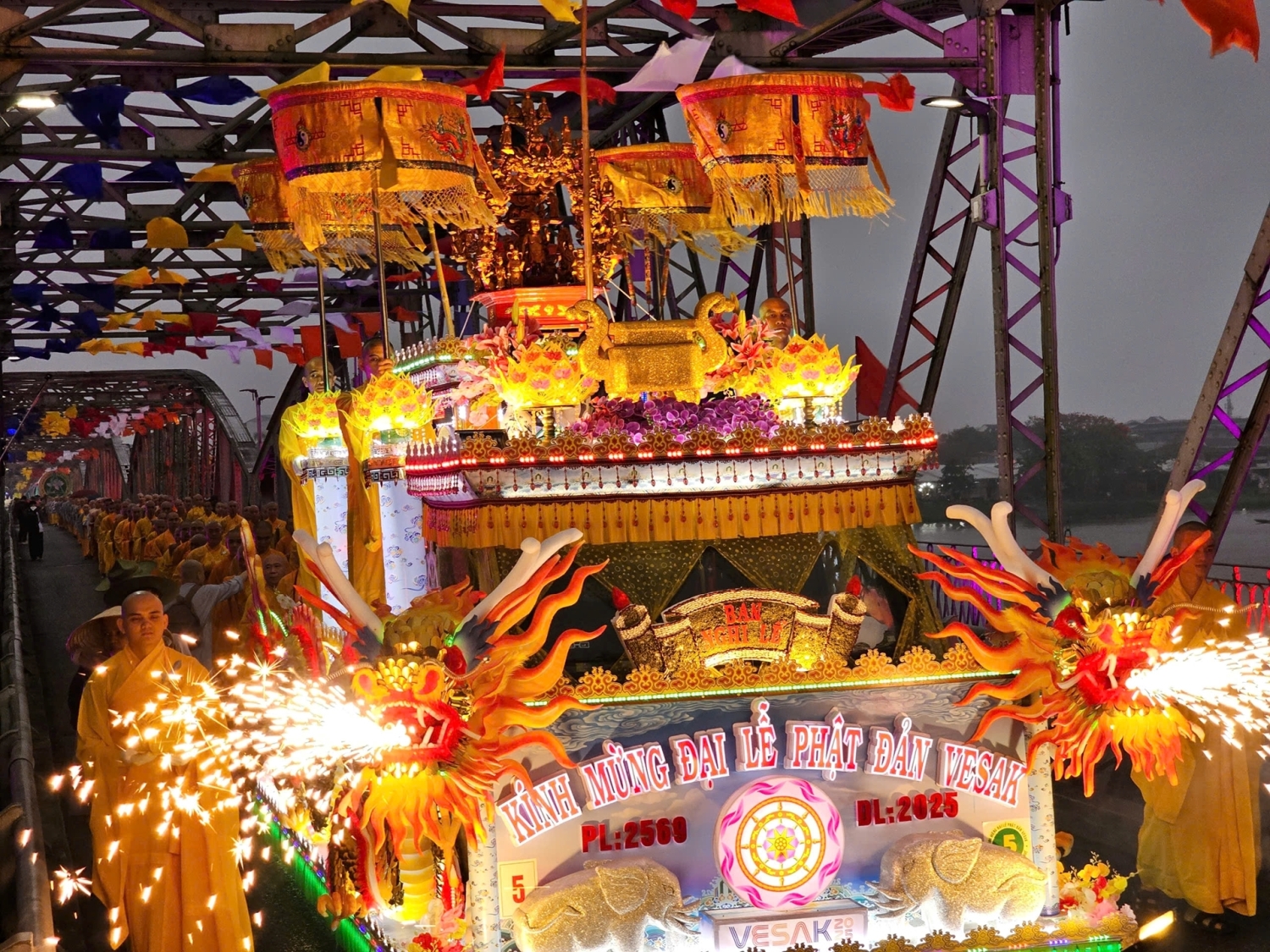 Nghi lễ tắm Phật và rước Phật từ Quốc tự Diệu đến lên Tổ đình Từ Đàm nhân Đại lễ Phật đản Vesak PL.2569-DL.2025 được Ban Trị sự Giáo hội Phật giáo Việt Nam TP. Huế tổ chức trang trọng vào chiều 11/5 (14 tháng Tư âm lịch).