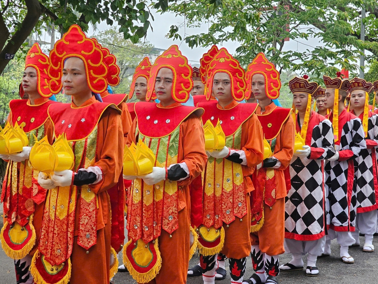 Dọc hai bên đoàn rước, đông đảo người dân, du khách đứng trang nghiêm chào đón đoàn và cầu nguyện. Tất cả tạo nên không gian lung linh, huyền ảo giữa lòng Cố đô.