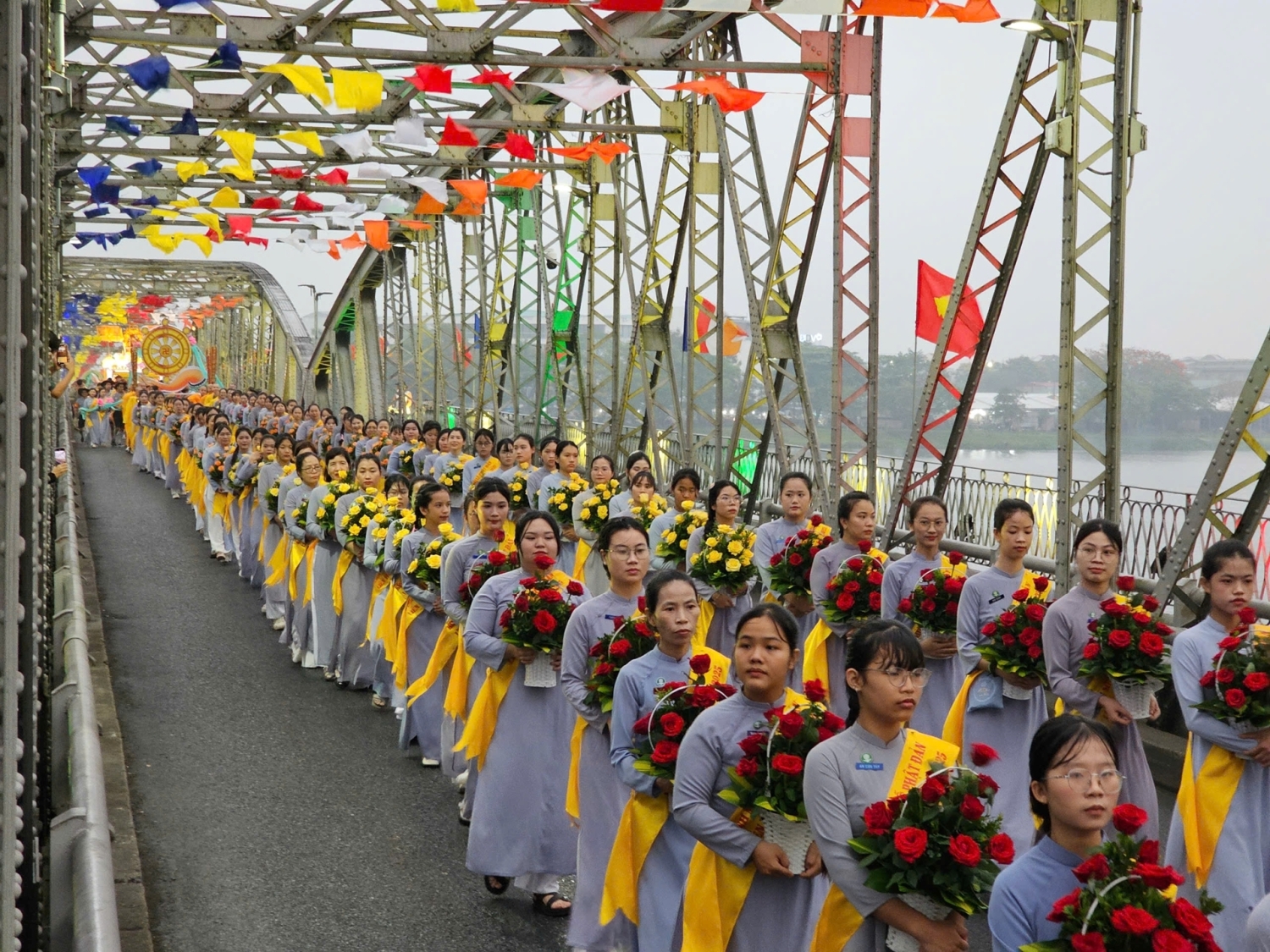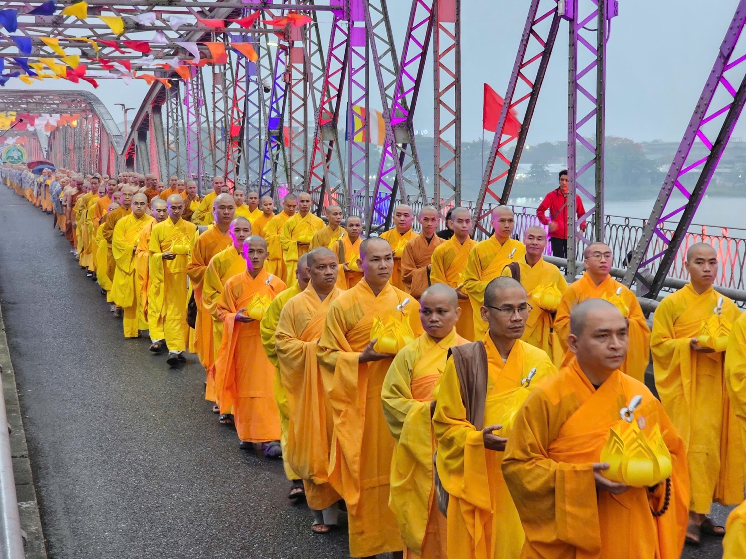 Đoàn rước bộ theo sau với sự tham gia của hàng ngàn Tăng ni, Phật tử. Khởi đầu từ Diệu Đế Quốc tự trên đường Bạch Đằng đi qua các tuyến đường Trần Hưng Đạo (quận Phú Xuân) – cầu Trường Tiền – đường Lê Lợi – đường Điện Biên Phủ và cuối cùng là lễ đài chính ở Tổ đình Từ Đàm (quận Thuận Hóa).