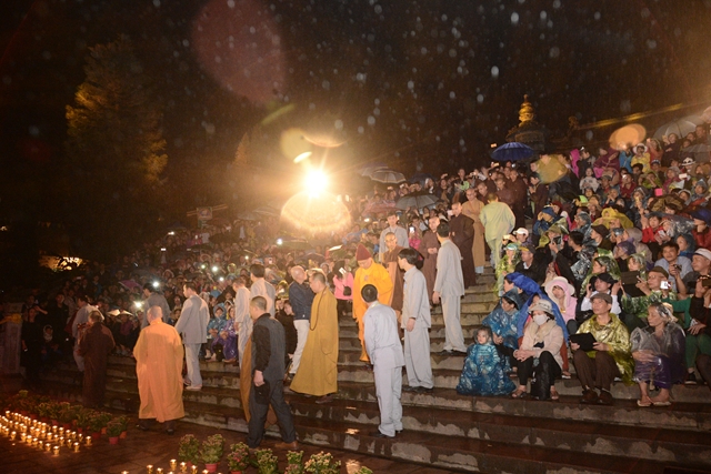Mặc dù tiết trời xuân, lất phất mưa bay nhưng không làm ngăn cản các Phật tử và du khách thập phương tới tham dự đêm nhạc, hàng ngàn Phật tử đã đội mưa vân tập về Thiên Trù từ rất sớm để kiếm cho mình những chỗ ngồi đẹp nhất tham dự chương trình ý nghĩa này.