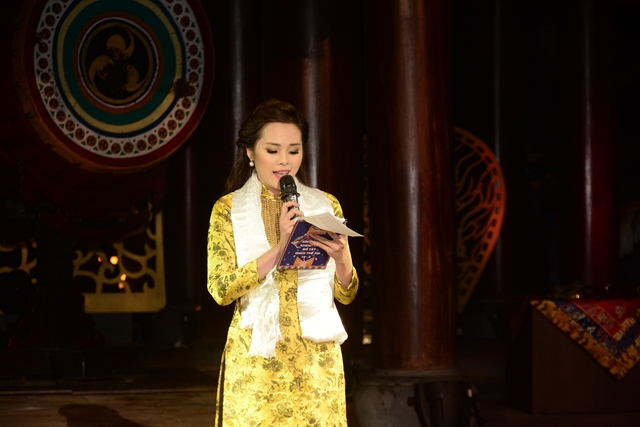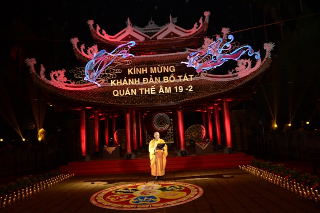 Trước khi chính thức bước vào đêm nhạc, thượng tọa Thích Minh Hiền – Trưởng BTC lễ hội đã lên phát biểu khac mạc đêm nhạc Kính Mừng Khánh Đản Bồ Tát Quán Thế Âm tại chùa Hương PL. 2561 – DL. 2016. Trong bài phát biểu khai mạc, thượng tọa trụ trì đã ôn lại lịch sử hình thành và phát triển của chùa Hương và sự tích Quán Thế Âm Bồ Tát tại động Hương Tích. Động Hương Tích cũng chính là nơi Bồ Tát Quán Thế Âm đắc đạo sau 9 năm tu hành. Việc tổ chức các hoạt động mừng khánh đản của Ngài là nhằm để tri ân công đức vô lượng của Ngài. Đặc biệt, ngày vía Bồ Tát Quán Thế Âm 19/2 âm lịch hàng năm được coi là ngày lễ lớn nhất trong mùa lễ hội của chùa Hương.