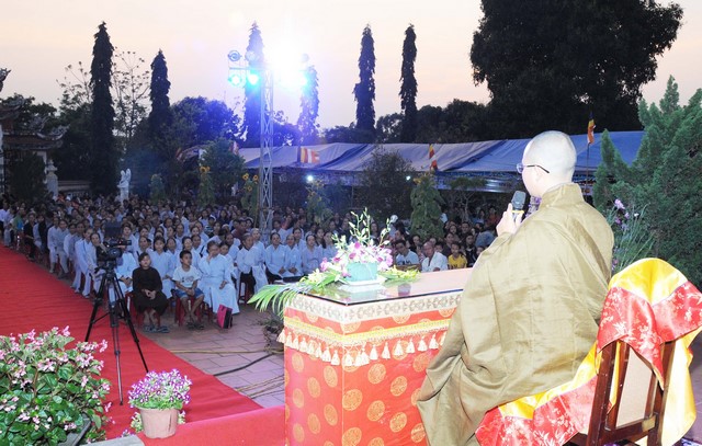 Sau thời pháp thoại, chư tôn đức đã niêm hương bạch Phật và cầu nguyện. ĐĐ.Thích Quảng Hiền, trụ trì chùa chia sẻ về ý nghĩa của đêm tạ đàn Dược Sư, nguyện cầu chư Phật chứng minh và gia hộ cho mọi người được bình an, hạnh phúc.
