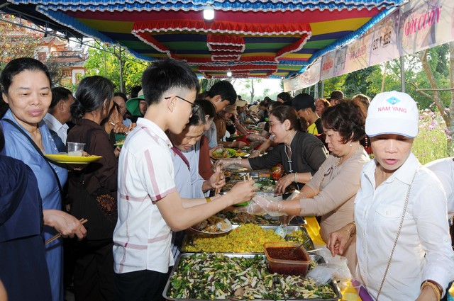 Dịp này, chùa Hòa Mỹ còn tổ chức chương trình ẩm thực chay, văn nghệ gây quỹ từ thiện do các nghệ sĩ đến từ TP.Đà Nẵng dâng lên cúng dường.