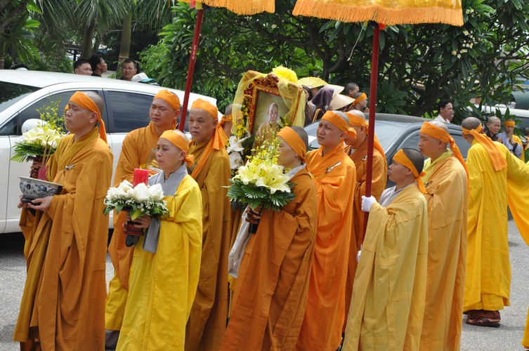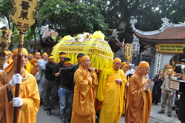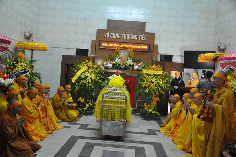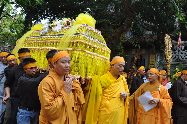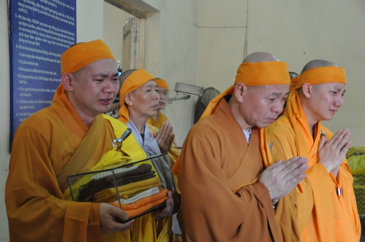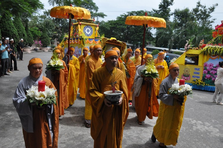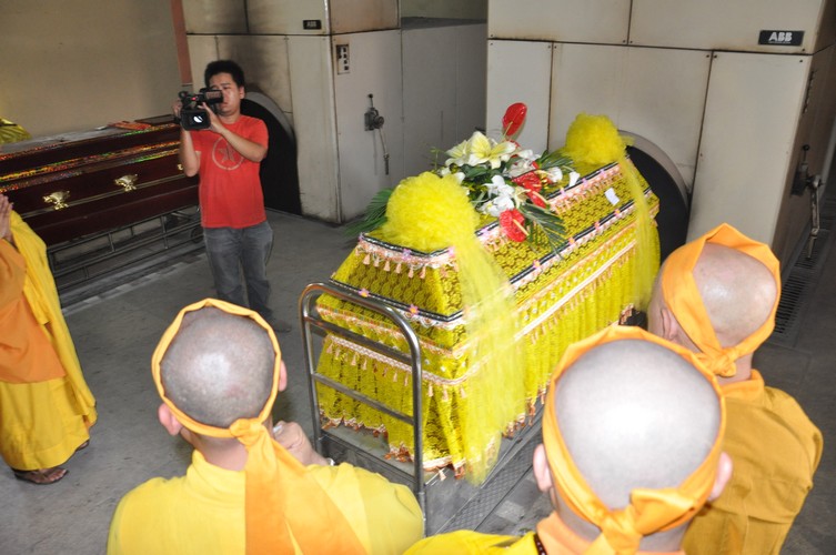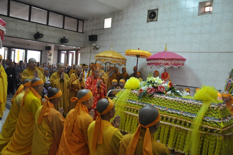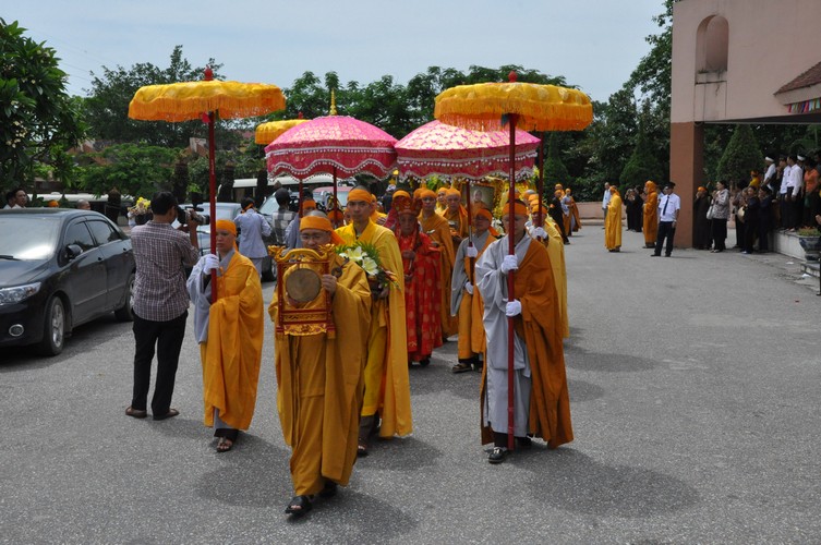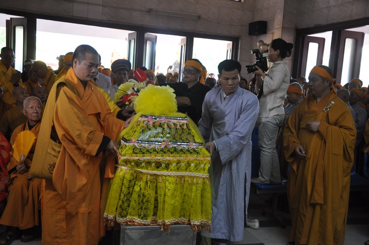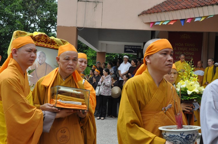 Cuối buổi lễ chư Tôn đức cùng hàng nghìn phật tử đã cung tiến kim quan của Ngài làm lễ trà tỳ tại Đài Hóa thân Hoàn Vũ, và cung nghinh kim thân nhập Bảo tháp tại Tổ đình Kim Liên – Đồng Đắc – Ninh Bình vào buổi chiều cùng ngày.