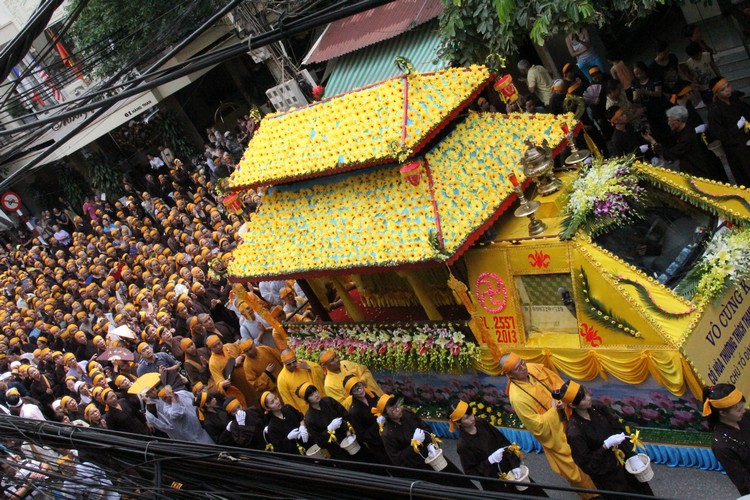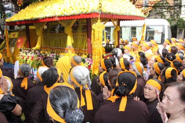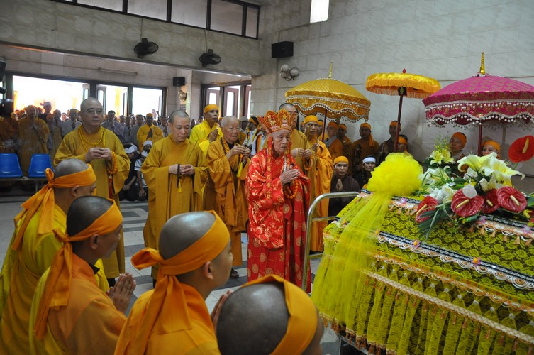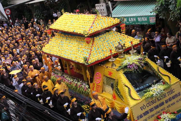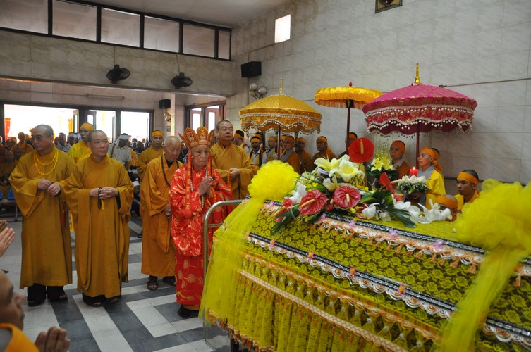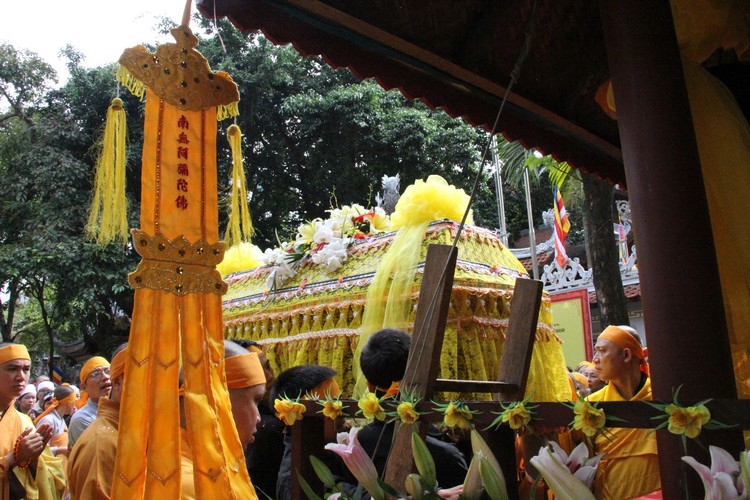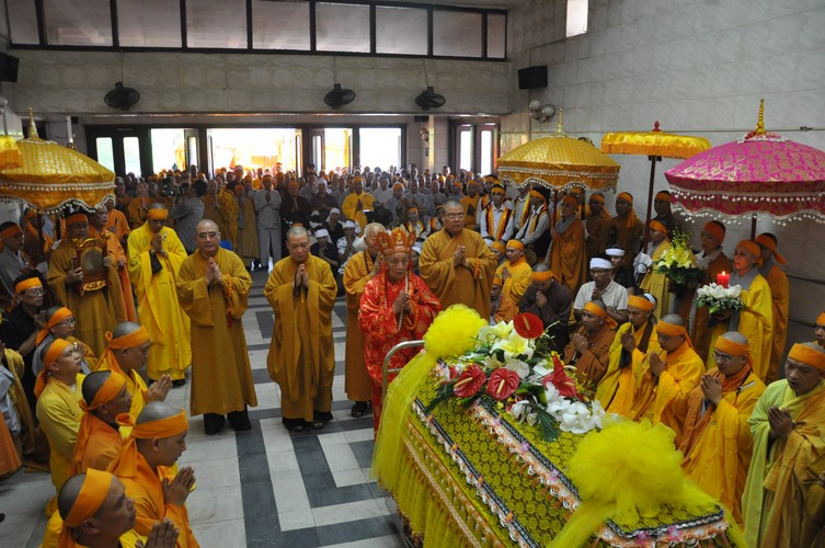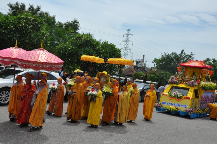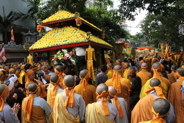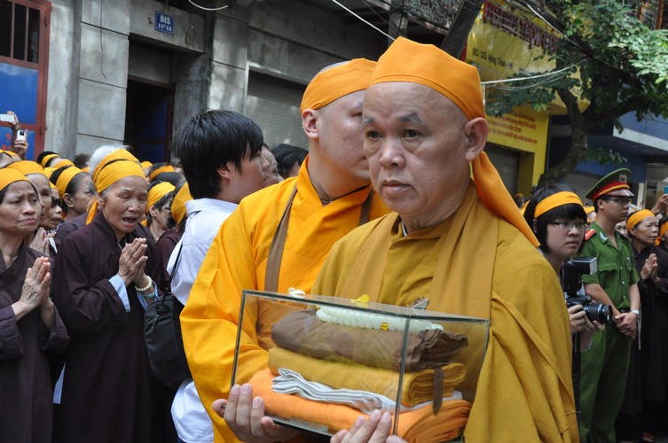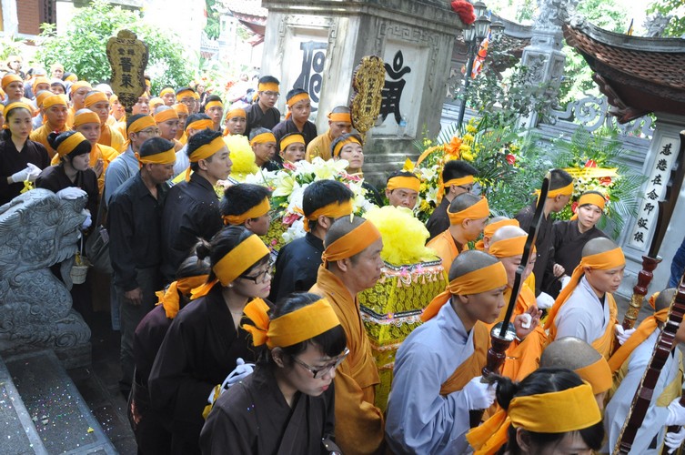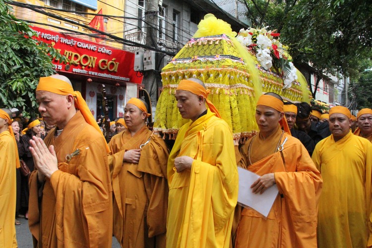 Cuối buổi lễ chư Tôn đức cùng hàng nghìn phật tử đã cung tiến kim quan của Ngài làm lễ trà tỳ tại Đài Hóa thân Hoàn Vũ, và cung nghinh kim thân nhập Bảo tháp tại Tổ đình Kim Liên – Đồng Đắc – Ninh Bình vào buổi chiều cùng ngày.