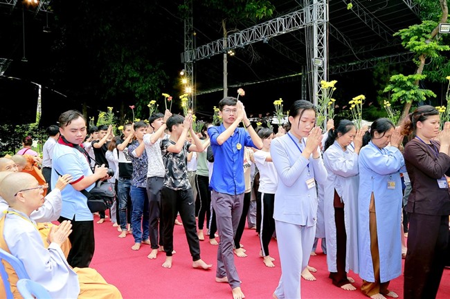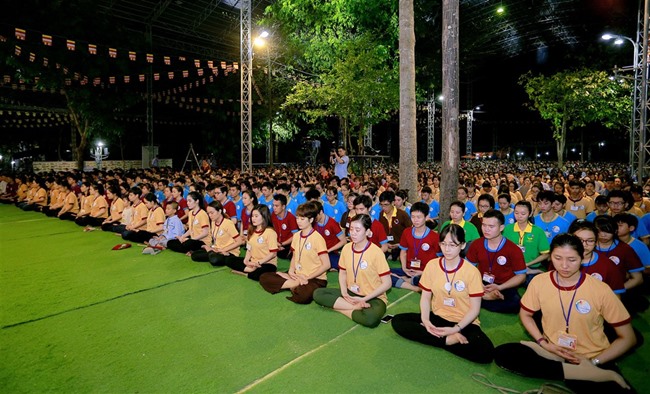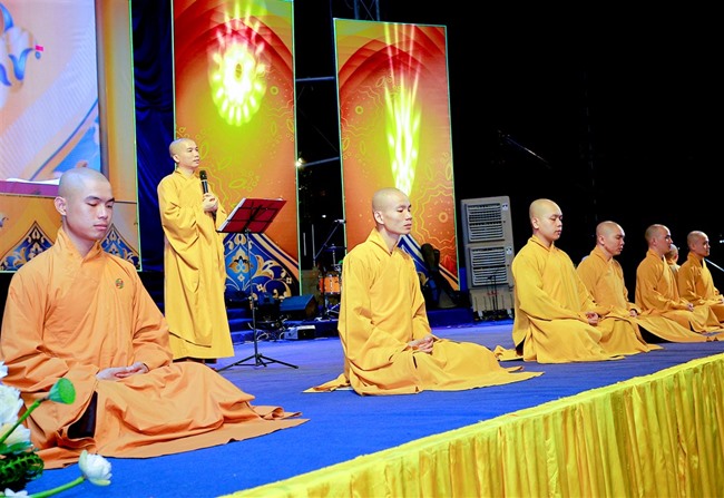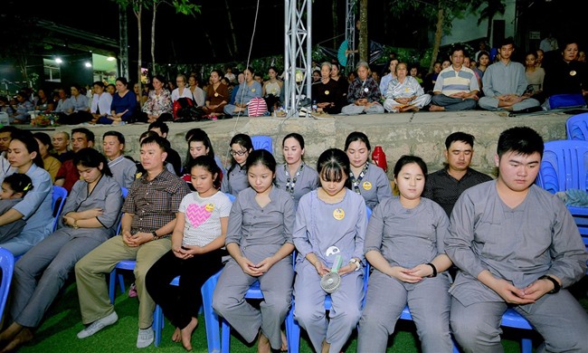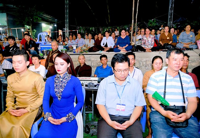 Tiếp đến, đúng 18h30”, ĐĐ Thích Tánh Khoan thay mặt cho Ban Tổ Chức đọc lời khai mạc và hướng dẫn toàn thể phật tử ngồi thiền 30 phút.