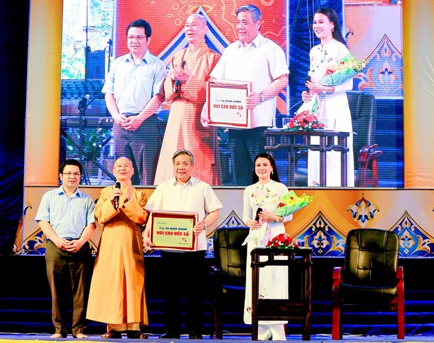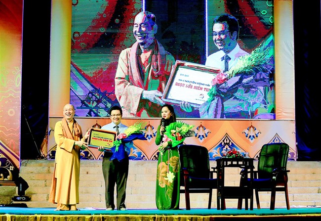 Tại buổi giao lưu, Thượng tọa đã thay mặt tất cả Tăng Ni, phật tử Thiền Tôn Phật Quang trao tặng một món quà tinh thần – là kỷ niệm chương vinh danh TS Nguyễn Đông Hải bằng 4 chữ “NGỌN LỬA NIỀM TIN”.