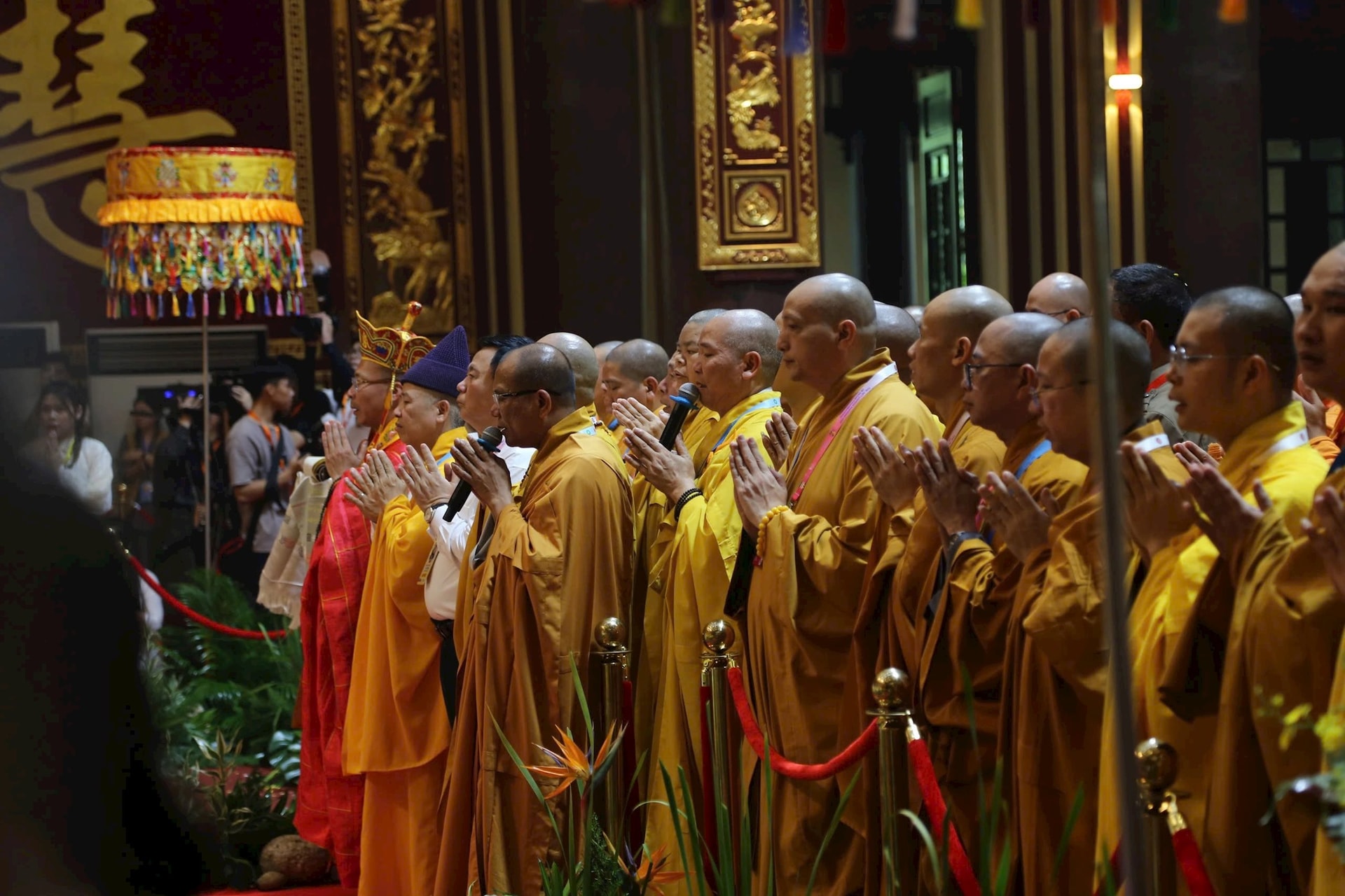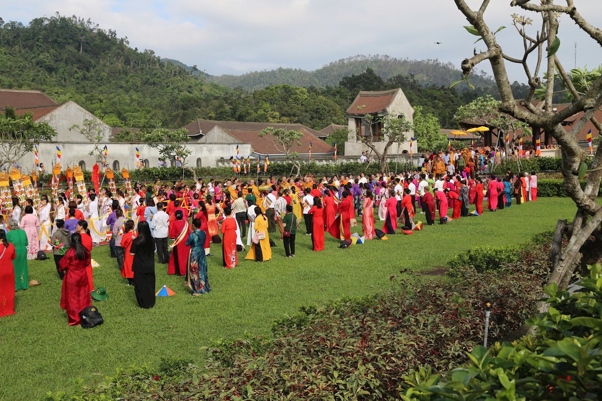 Các đại biểu làm lễ cung nghinh xá lợi Đức Phật trong Cung Trúc Lâm Yên Tử.