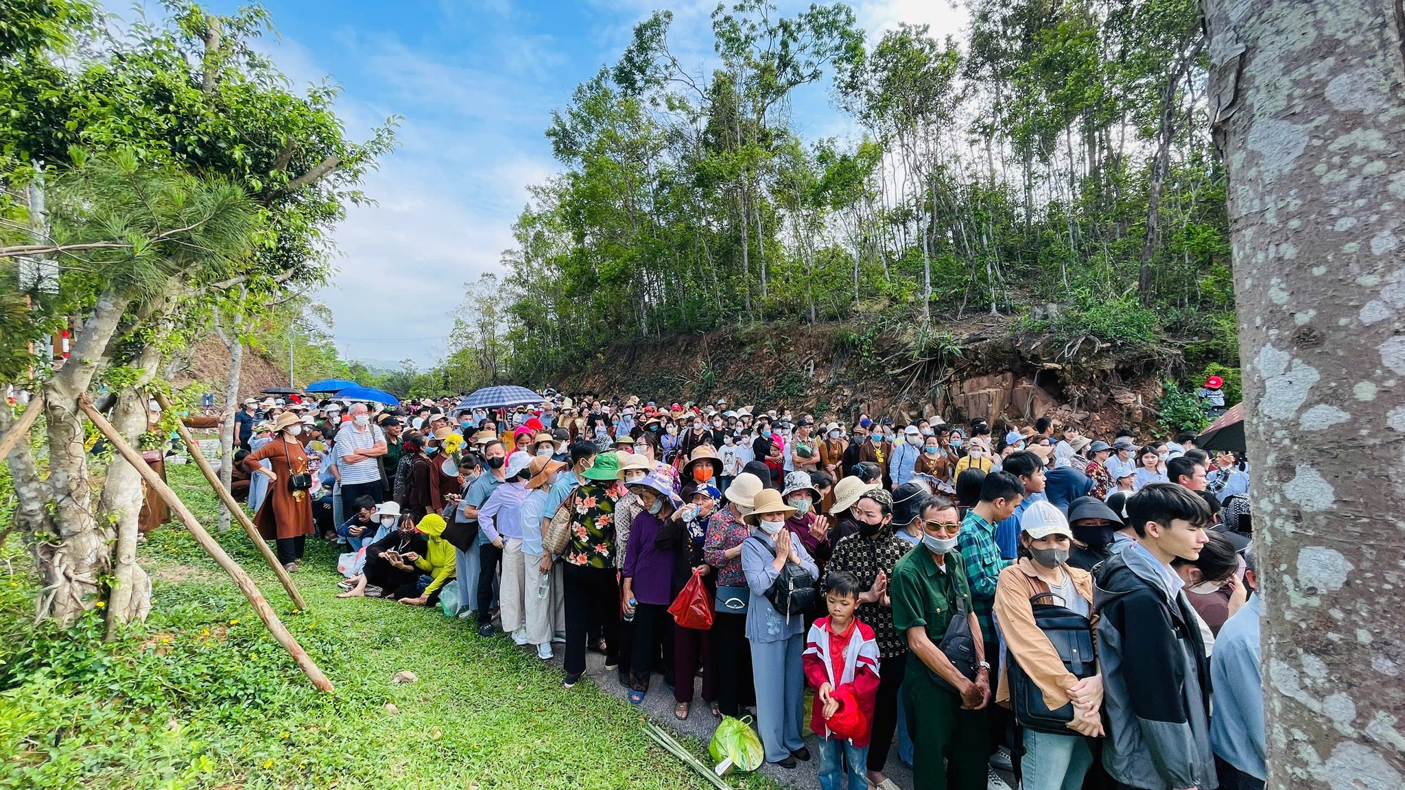 Đông đảo phật tử, nhân dân và du khách dõi theo lễ cung rước.