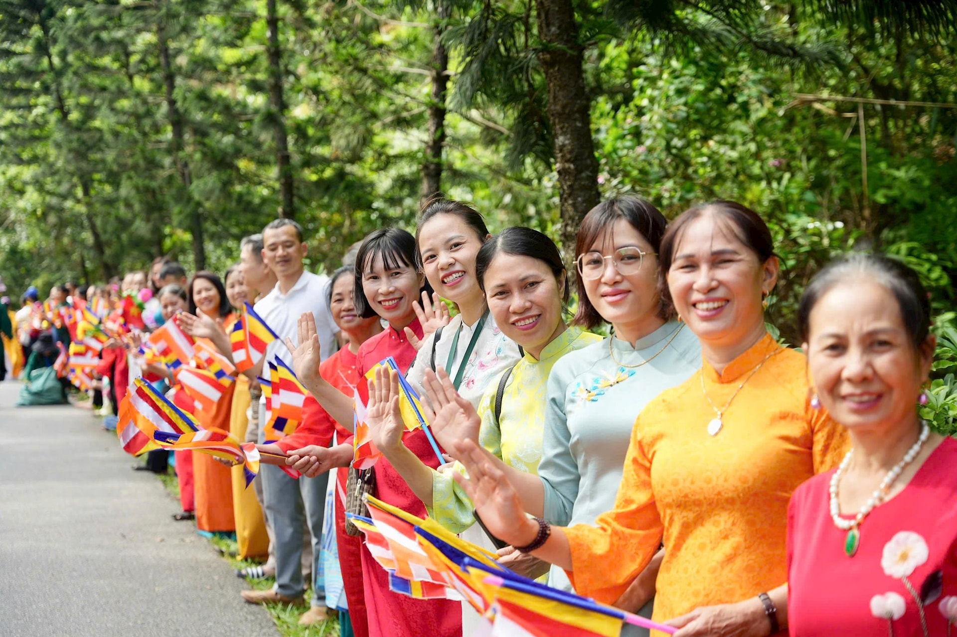 Phật tử, nhân dân và du khách hoan hỷ nghênh đón xá lợi Đức Phật.