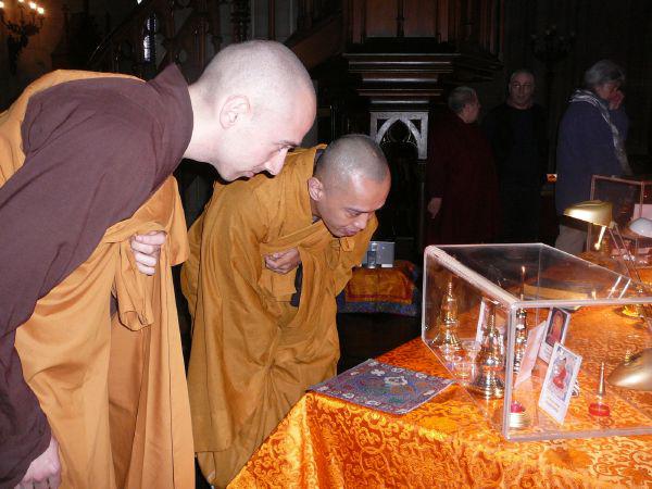 Nhận thấy được những cơ duyên hy hữu nhất trong cuộc đời, vừa qua TT. Thích Thiện Sơn – Trụ trì chùa Phật Huệ, chùa Phật Đạo thuộc Hanauer-Landstraße 443-60314 Frankfurt am Main, Germany, cùng chư vị đệ tử là những Tăng, Ni tại hai chùa đã đến chiêm bái và đãnh lễ Xá Lợi của đức Phật và Xá Lợi của những vị cao Tăng tu hành đắc đạo.
