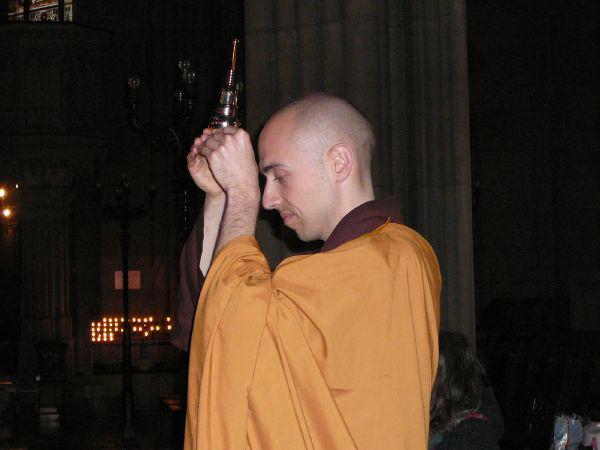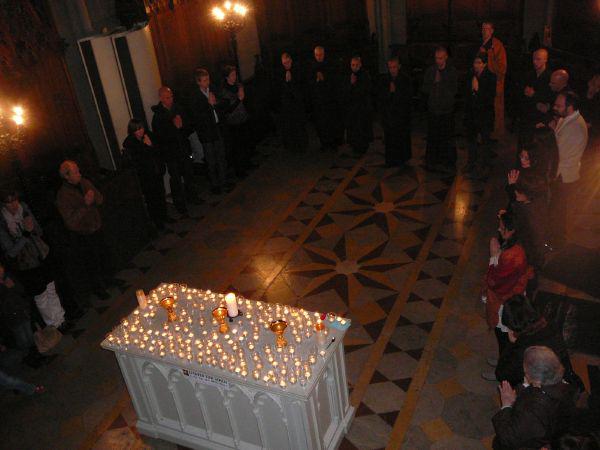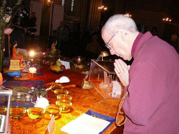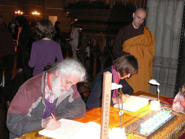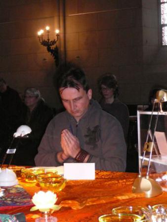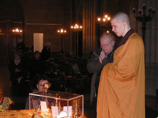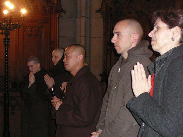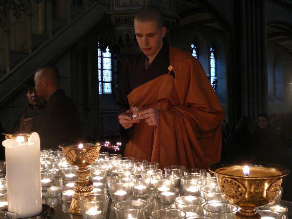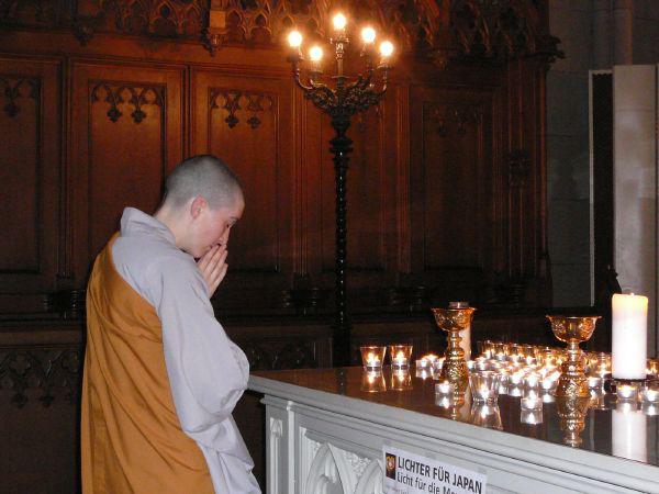 Buổi chiều cùng ngày, TT. Thích Thiện Sơn cùng chư đệ tử hướng dẫn tất cả chư vị thiện nam tín nữ, những người có tôn giáo hay không tôn giáo, những người có cùng màu da hay khác màu da,… Tất cả đồng hường về chư Phật, nương vào sự từ bi, lòng thương tưởng chúng sanh của quý Ngài, thắp sáng những ngọn nến hồng dâng về đất nước Nhật Bản xa xôi. Xin đối trước những mảnh đời bất hạnh, những vong hồn vất vưỡng trong cơn địa chấn vừa qua, đồng cầu mong những gì tươi đẹp nhất, những gì hạnh phúc nhất sẽ đến với họ.