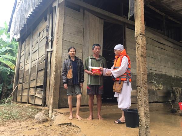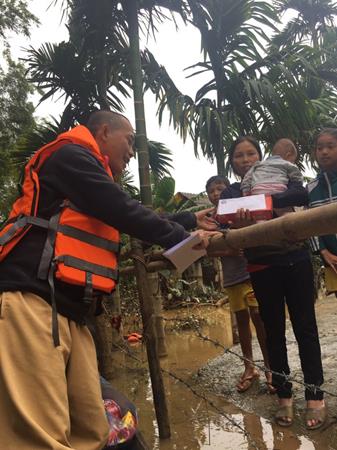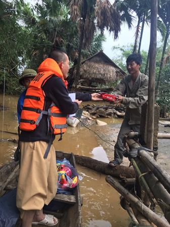 Một buổi sáng trải nghiệm với cuộc sống hiện thực, đúng với câu: “đến để mà thấy, nhìn để mà thương” lũ vẫn còn đó, một hình ảnh tang thương. Đại đức Thích Minh Tồn đã chia sẻ trên zalo của mình: “ruộng biến thành sông, nhà cửa chỉ còn tường và vách, lúa trổ hạt nước ngập còn đâu bữa cơm hằng ngày, cam trơ cành thành cây khô, trâu bò gà vịt trôi theo dòng nước… cuộc sống còn lại gì đây? Đặt chân đến nơi đây mới thấu hiểu được cuộc sống của những người dân nghèo cơ cực. Mong rằng một miếng khi đói bằng một gói khi no, con dân nước Việt, Kiều bào xa xứ quan tâm và chia sẻ về Miền Trung. Thương lắm miền trung mùa nước lũ!”.